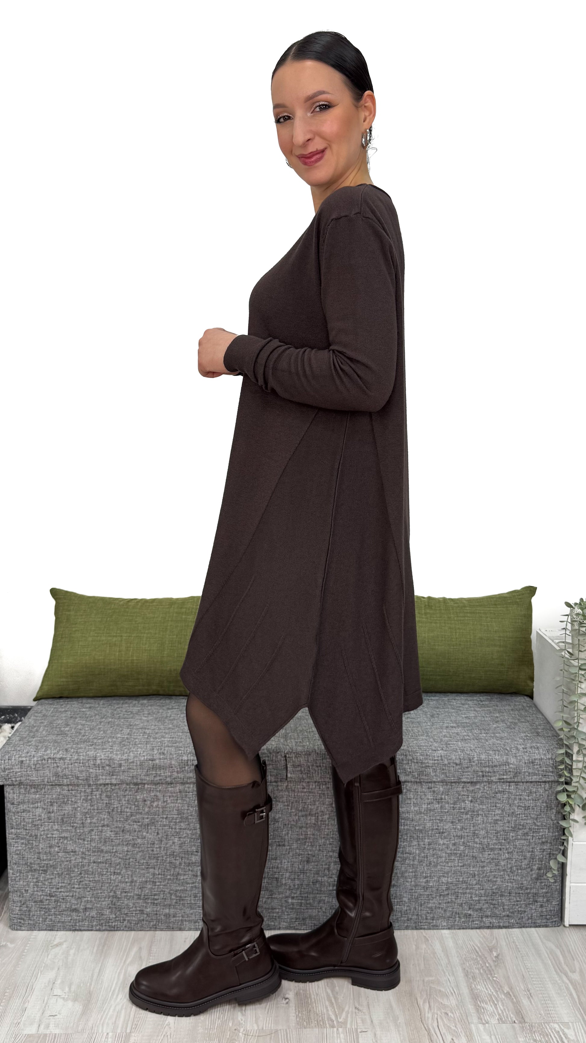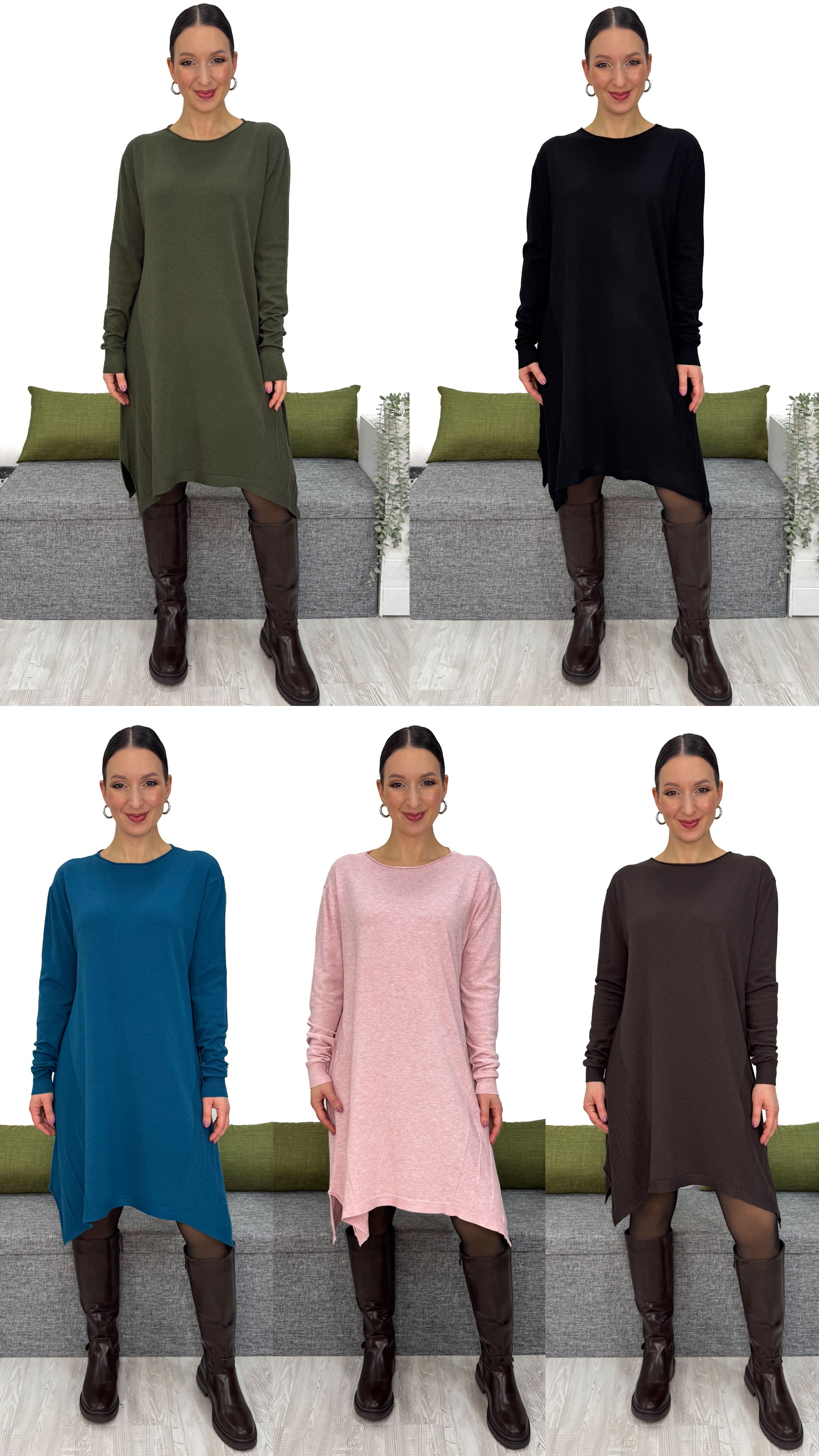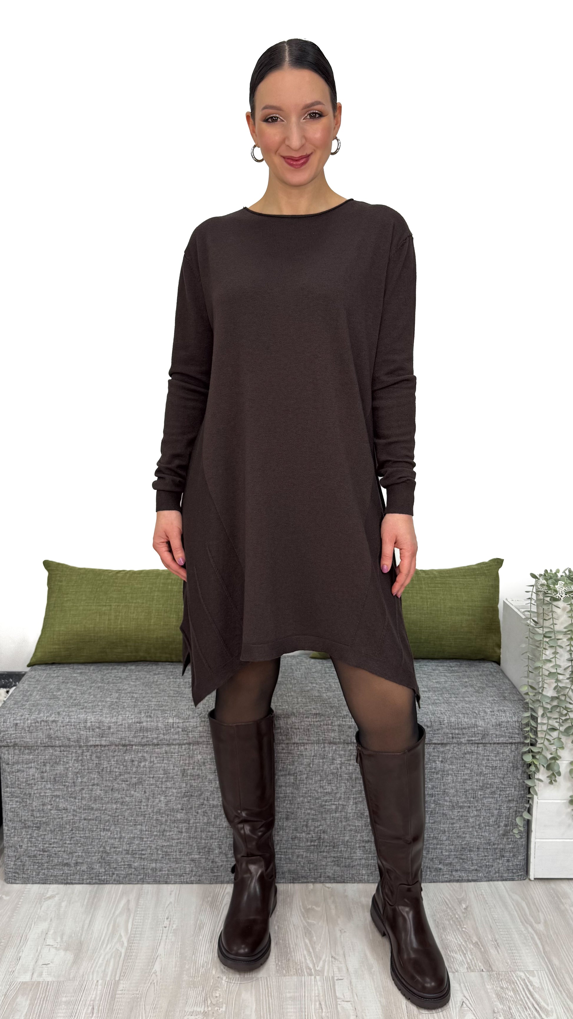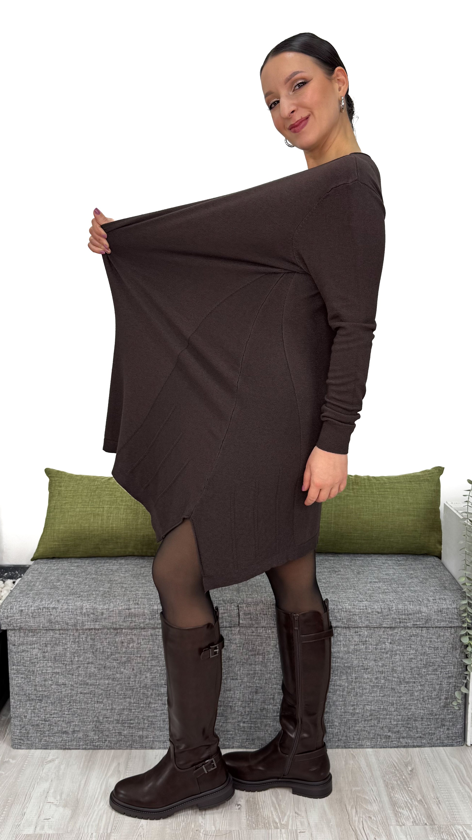 Questo abito in maglia è la dimostrazione che la semplicità, quando è fatta bene, può essere incredibilmente femminile. È morbido, confortevole e ti avvolge senza costringere: ti accompagna, non ti segna.