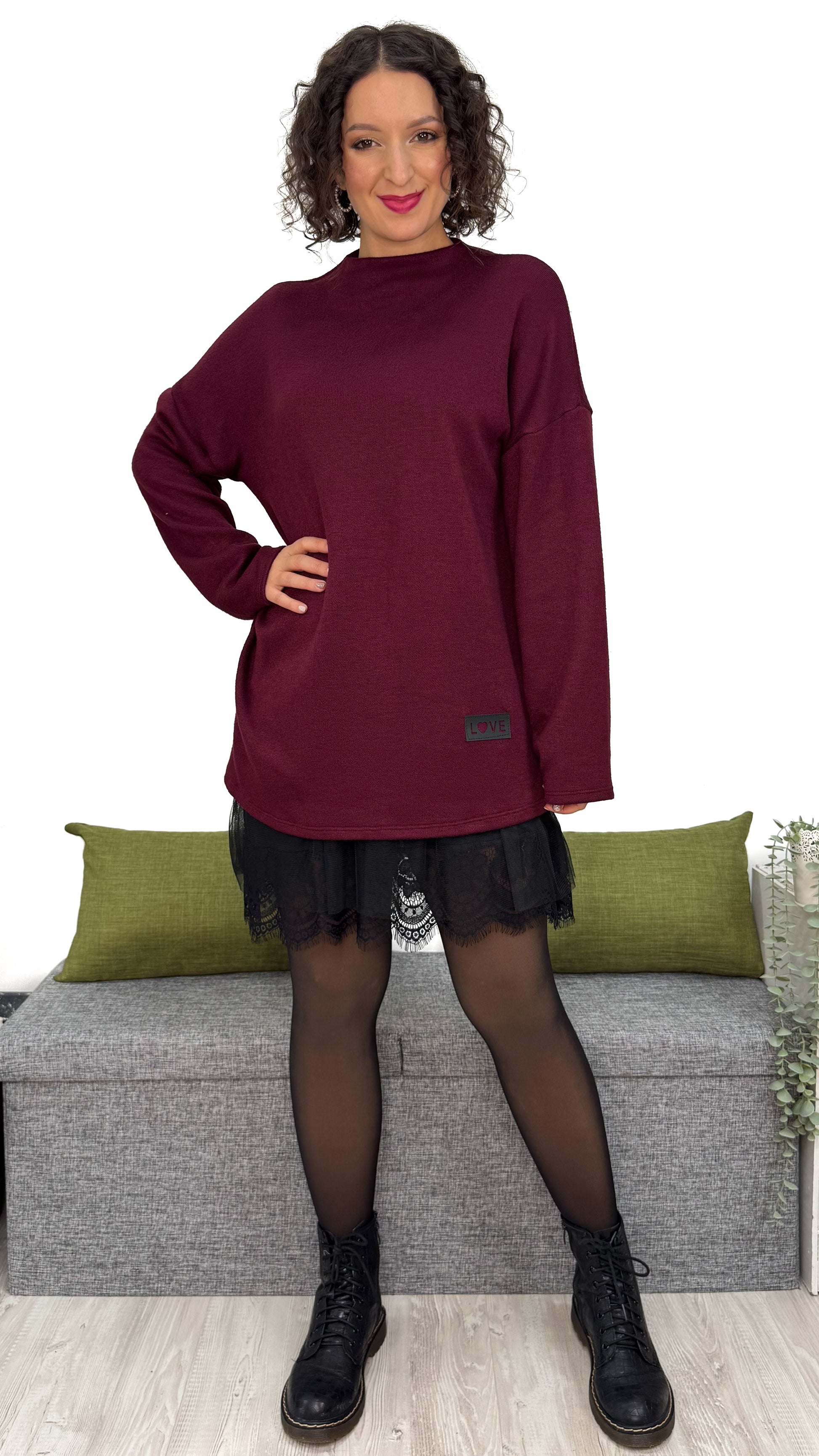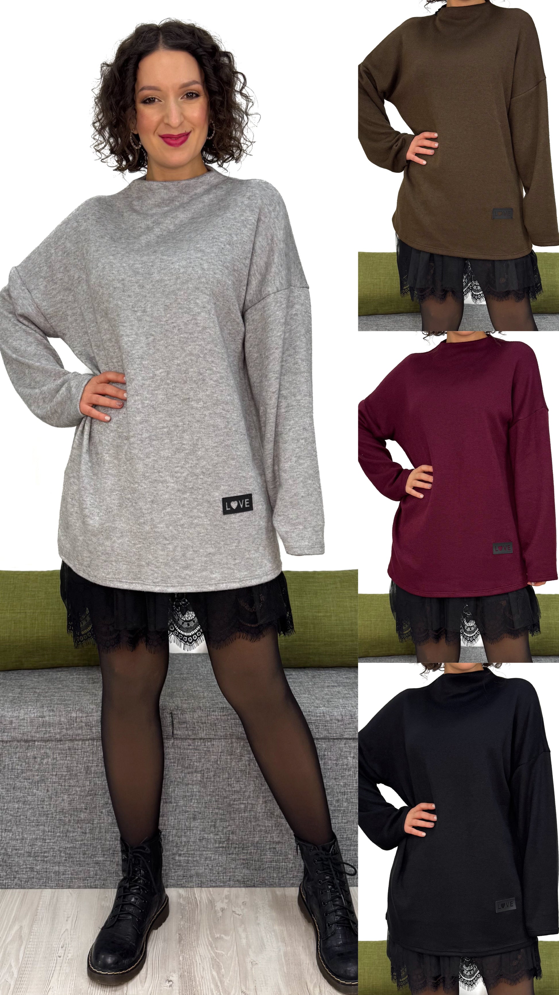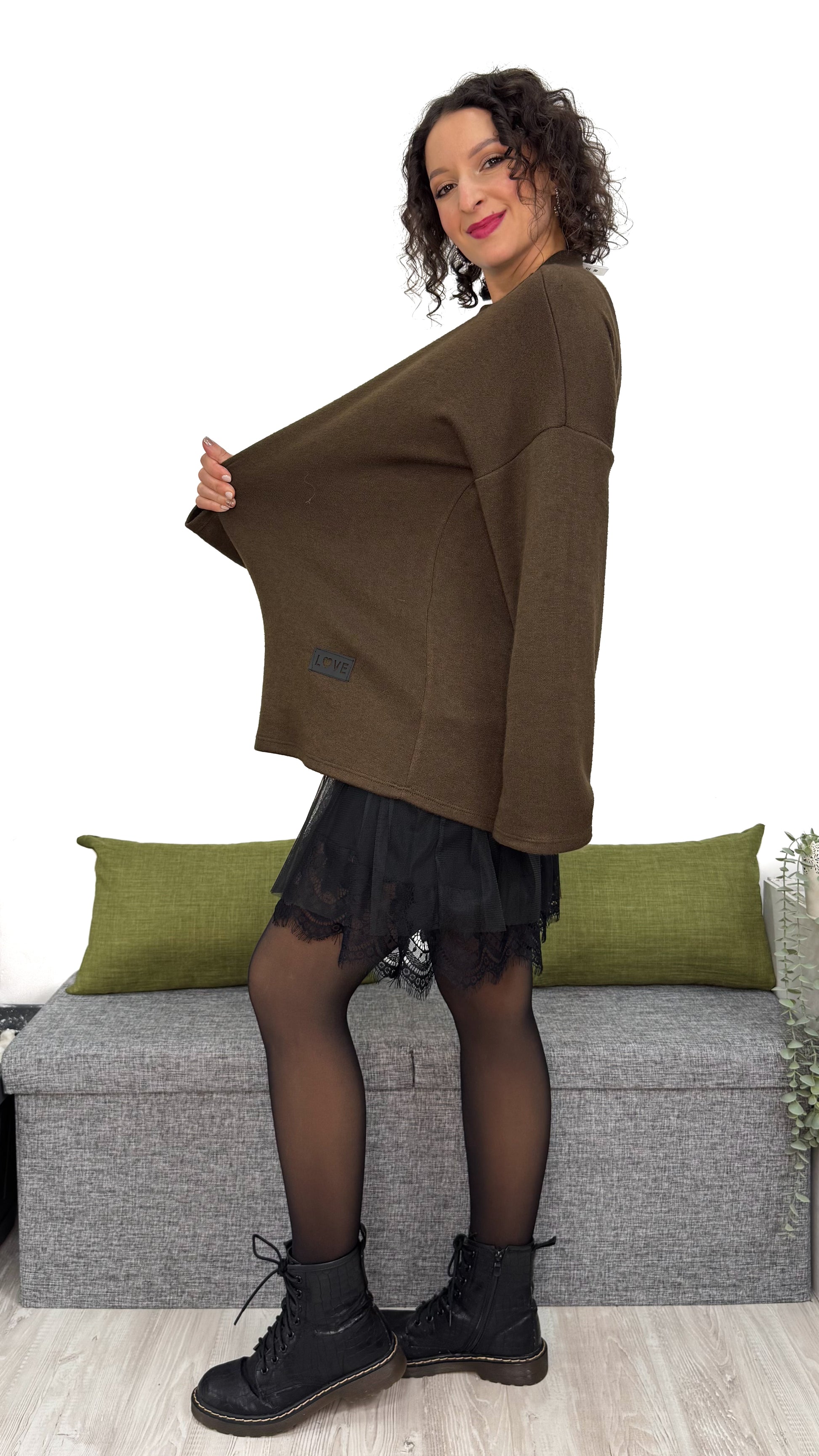 - Lunghezza del maglione a metà coscia che dona equilibrio e armonia a tutta la figura