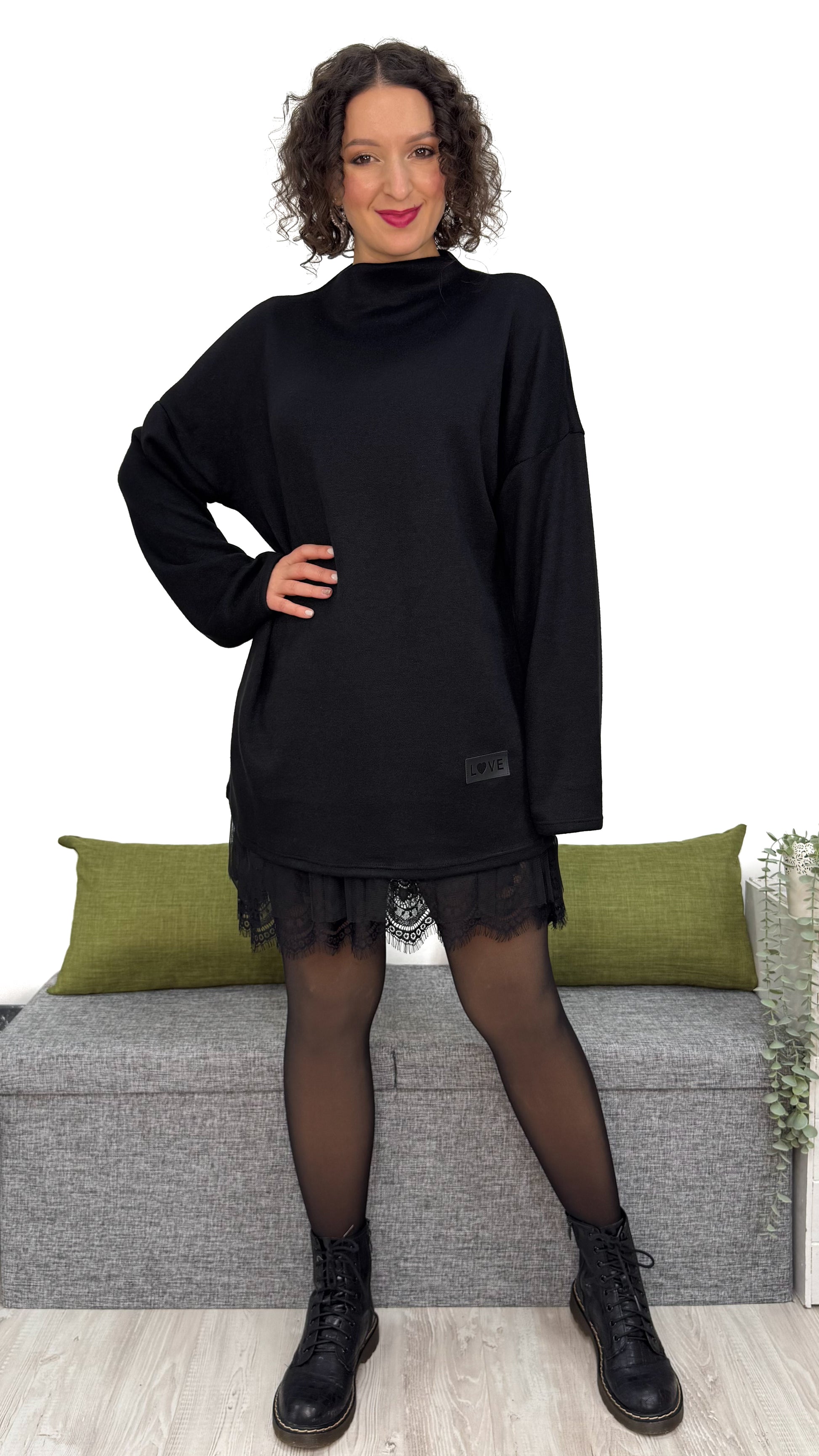 ABITO DUO LOVE — Un abito che sembra un tutt’uno ma è molto più furbo! Due pezzi pensati per valorizzarti e per farti creare mille outfit: la canotta con balza in pizzo e tulle è romantica e sfruttabile anche con con altri capi, mentre il maglione con lupetto è morbido caldo e lungo quanto basta per slanciare e dare proporzione al look.