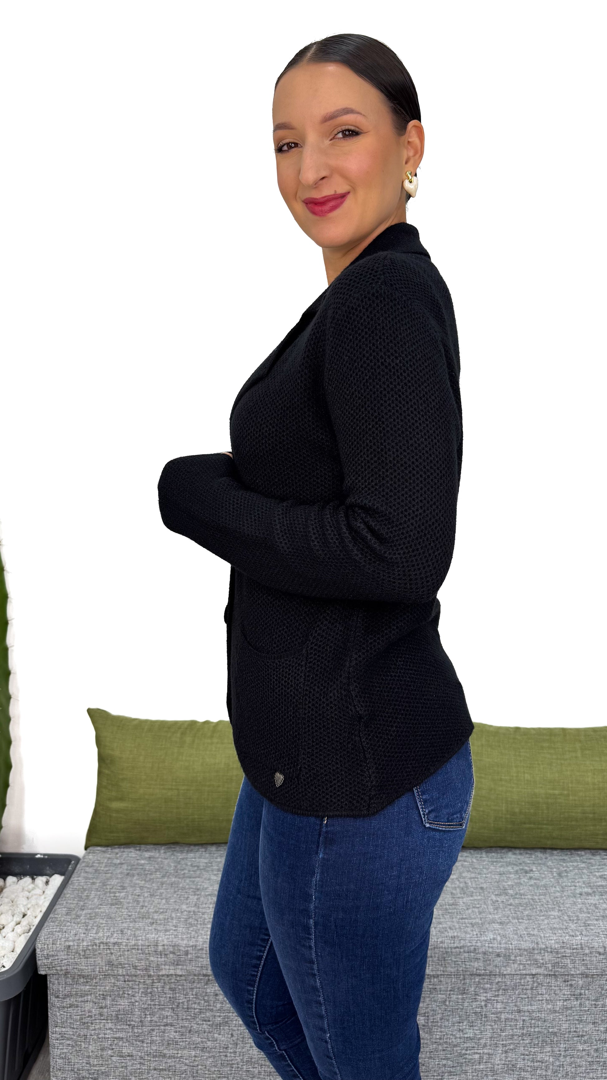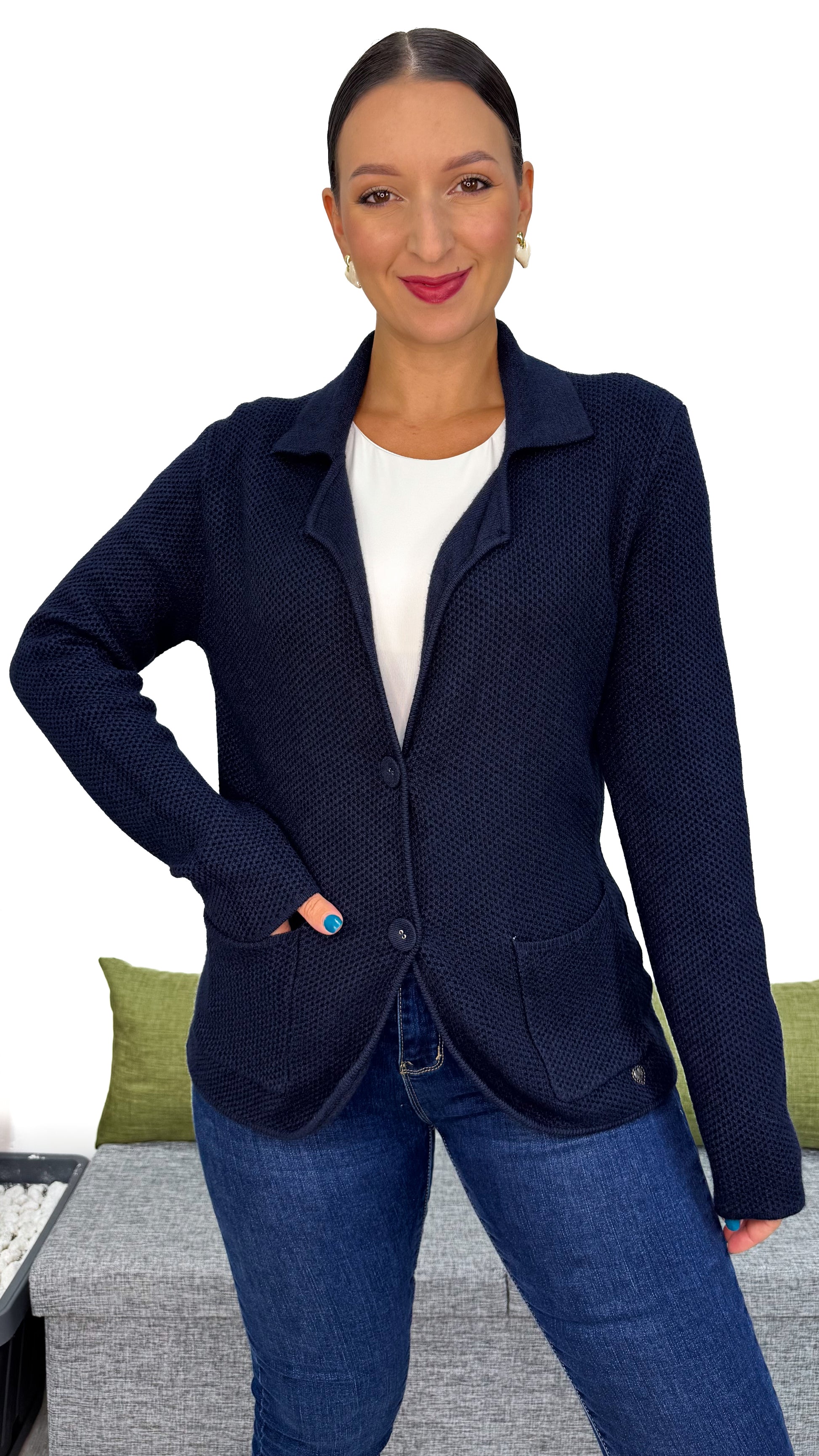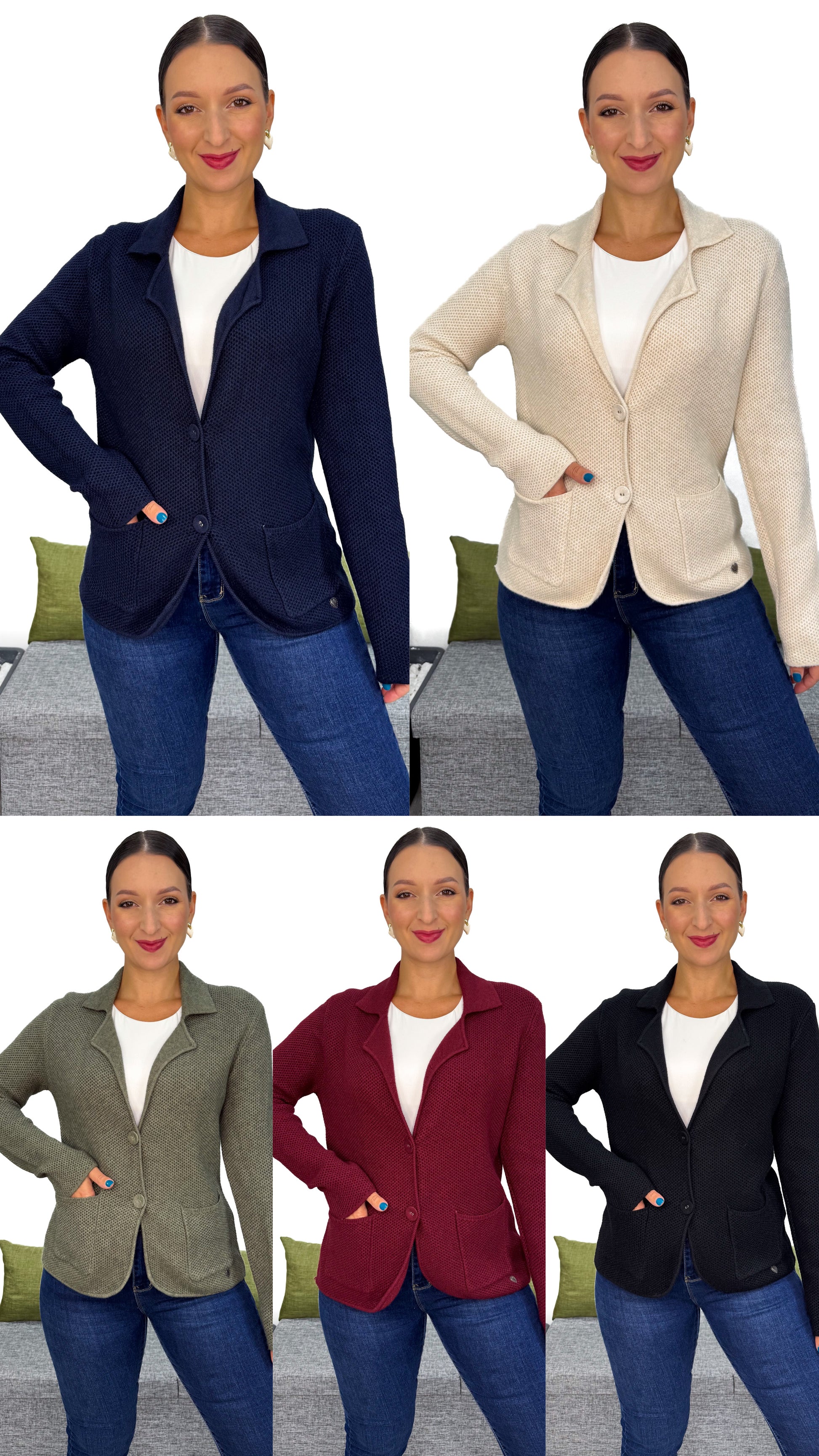 - Trama particolare a nido d’ape: un effetto chic e moderno che lo distingue dal classico blazer.