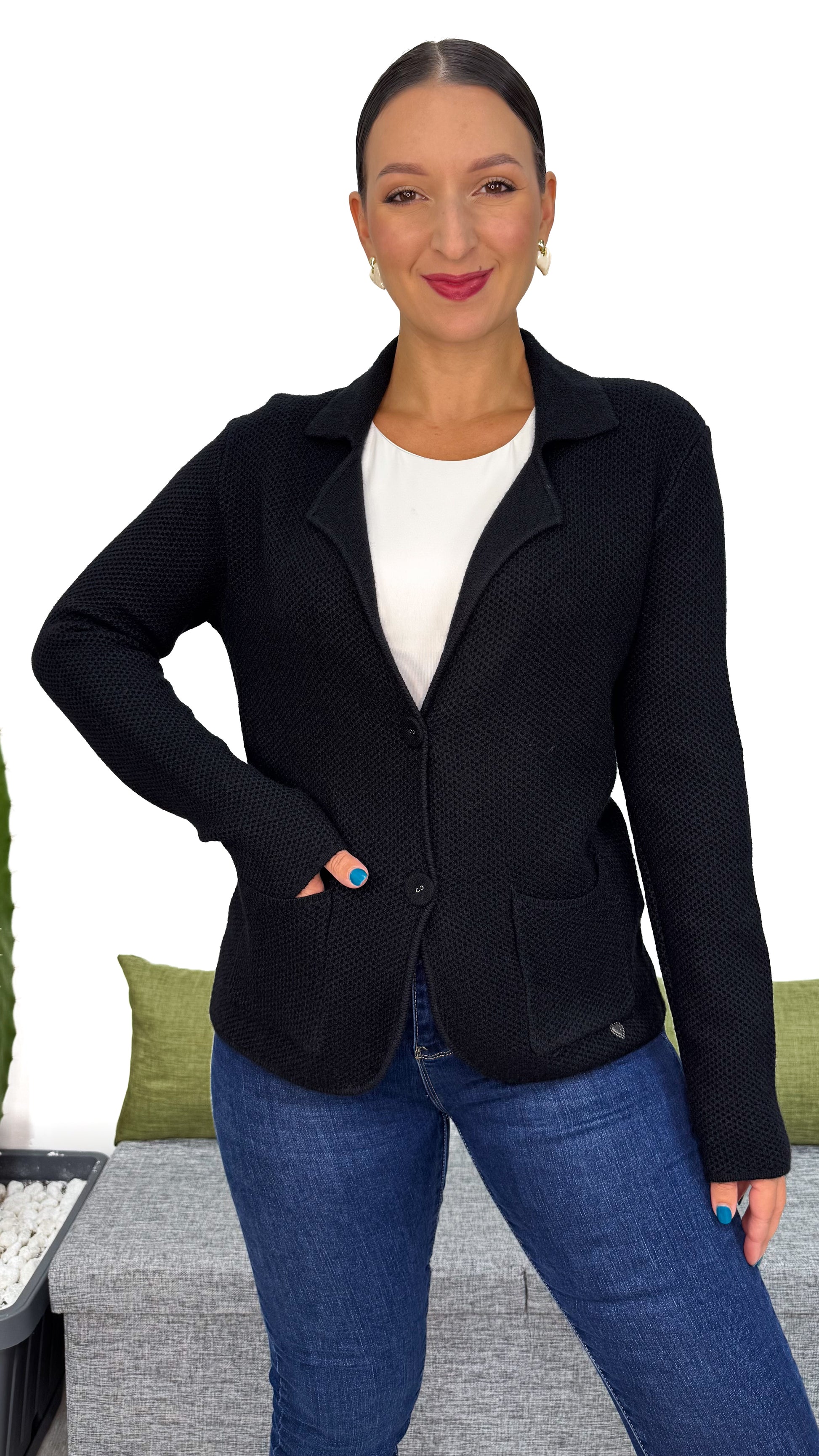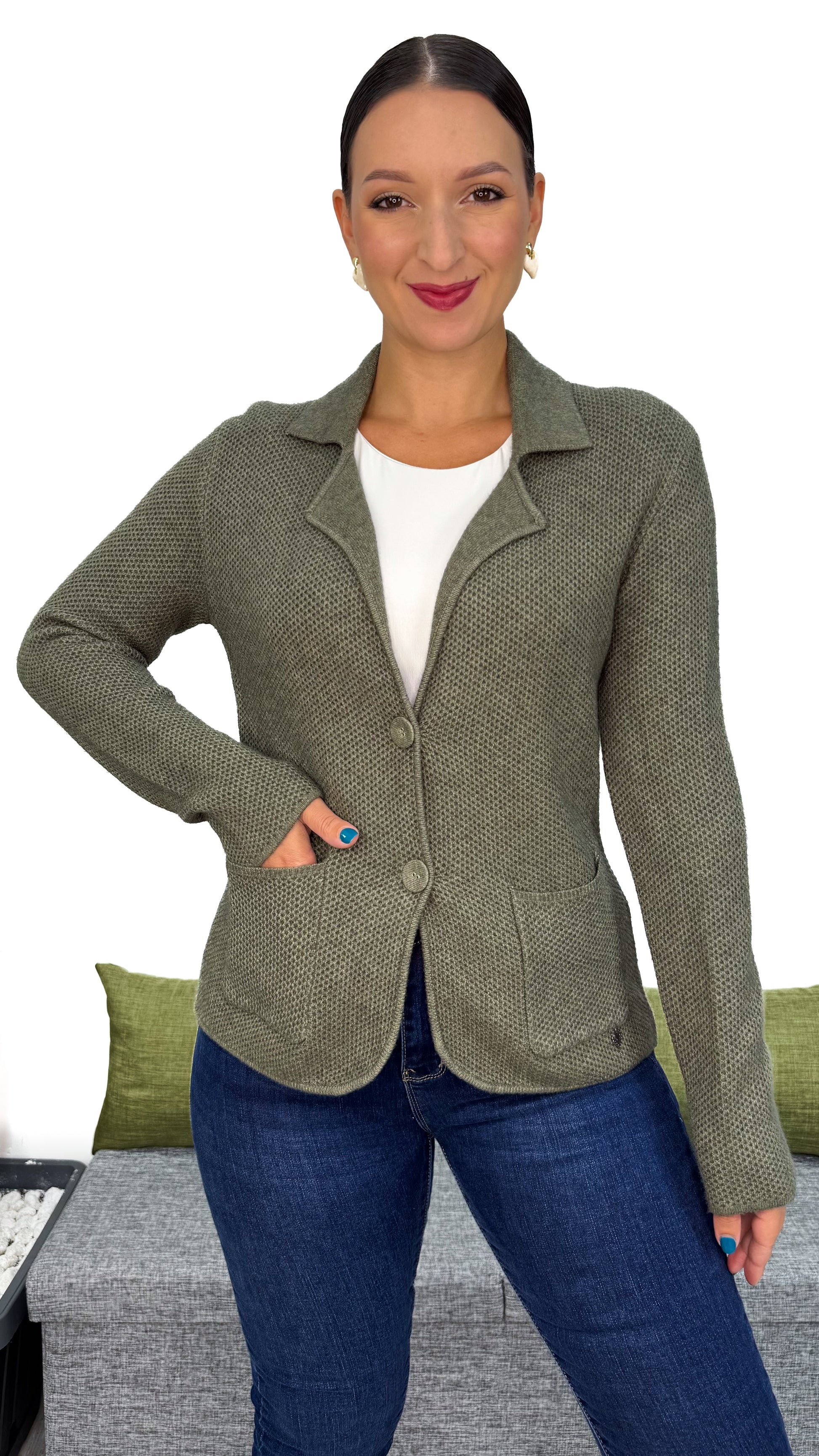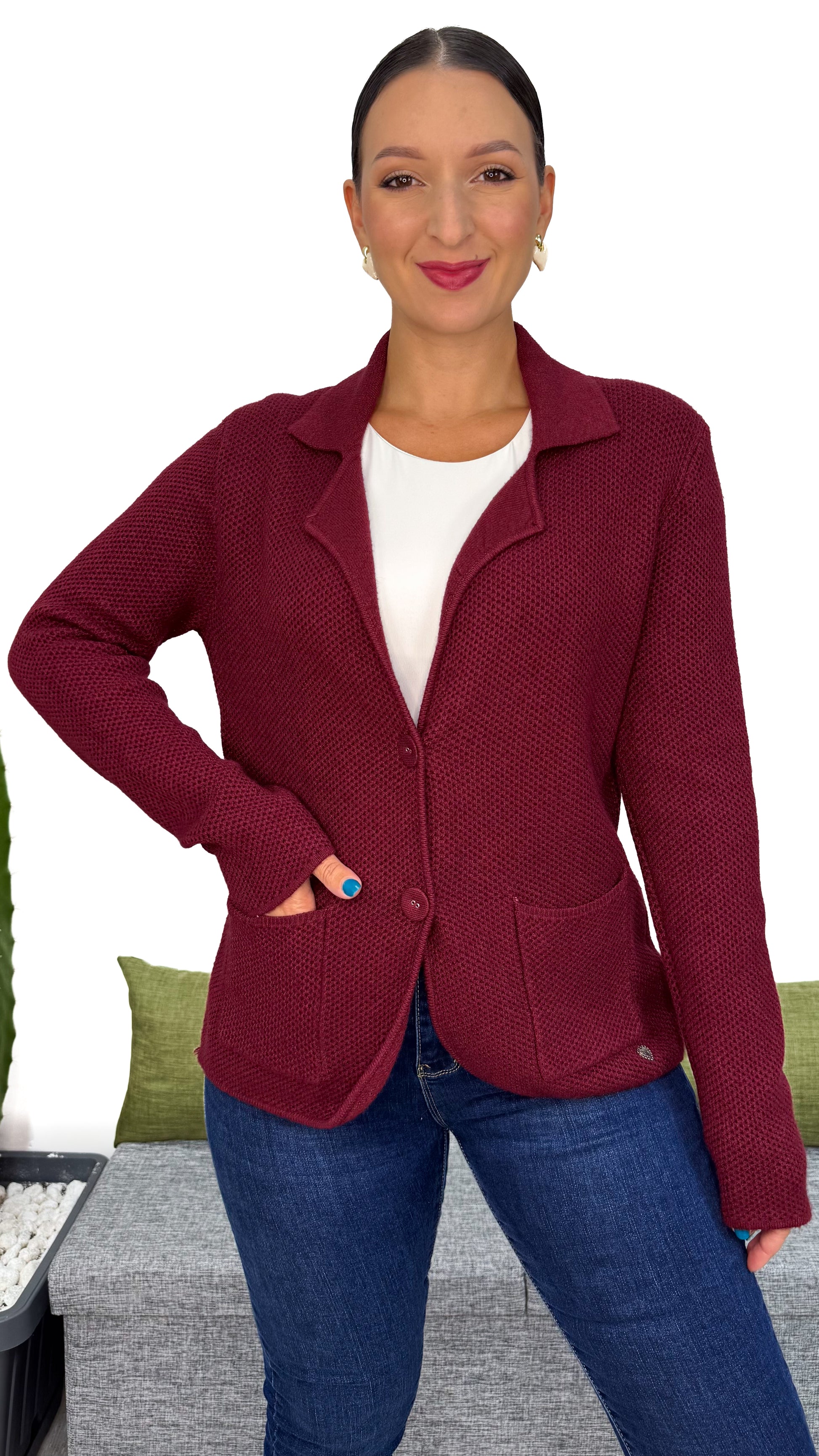 - Trama particolare a nido d’ape: un effetto chic e moderno che lo distingue dal classico blazer.