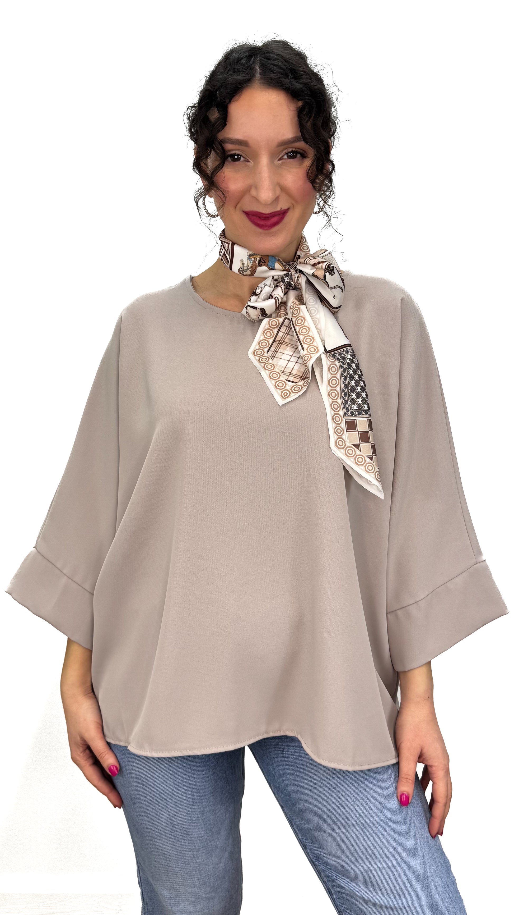 - MODELLO: ha scollo a giro, maniche a 3/4 leggermente a campana che donano movimento e femminilità, e una lunghezza regolare leggermente più lunga sul retro, perfetta per coprire bene e slanciare la figura.