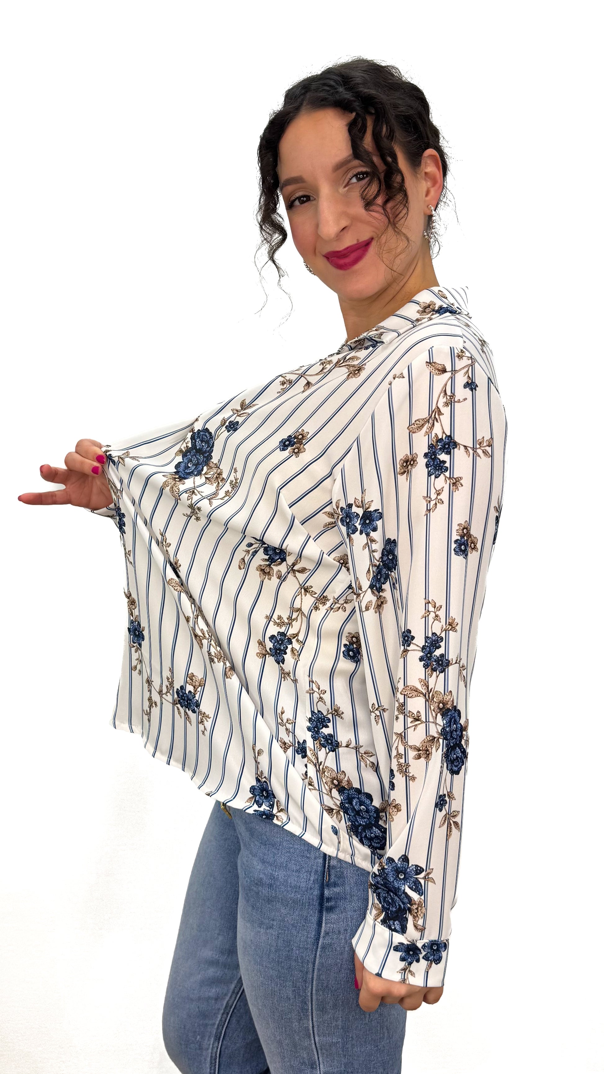 - La vera protagonista è la FANTASIA a righe arricchita da delicati fiori, che rende la blusa super femminile, luminosa e primaverile 🌸