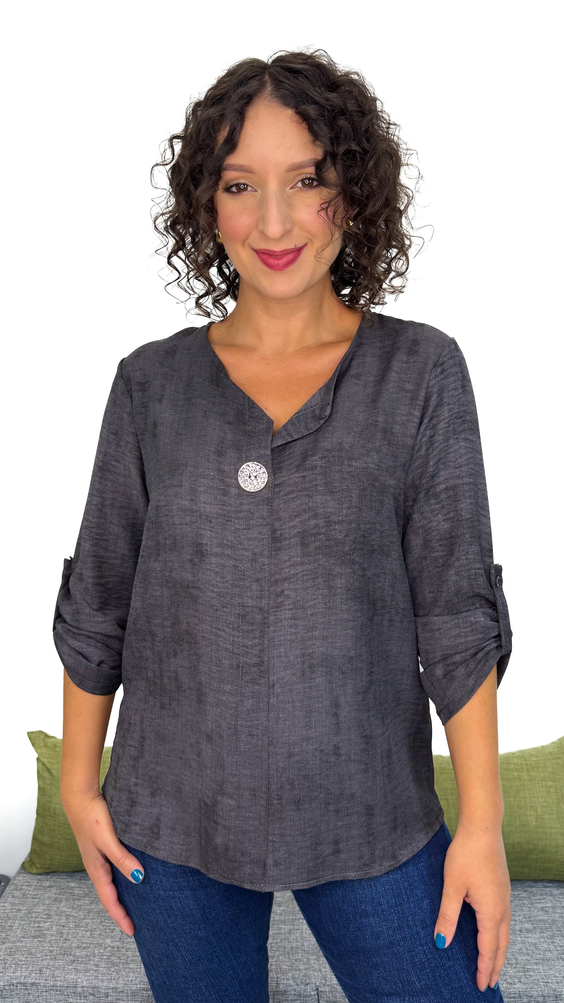 - Manica strategica: indossala lunga o a 3/4 grazie al pratico bottoncino