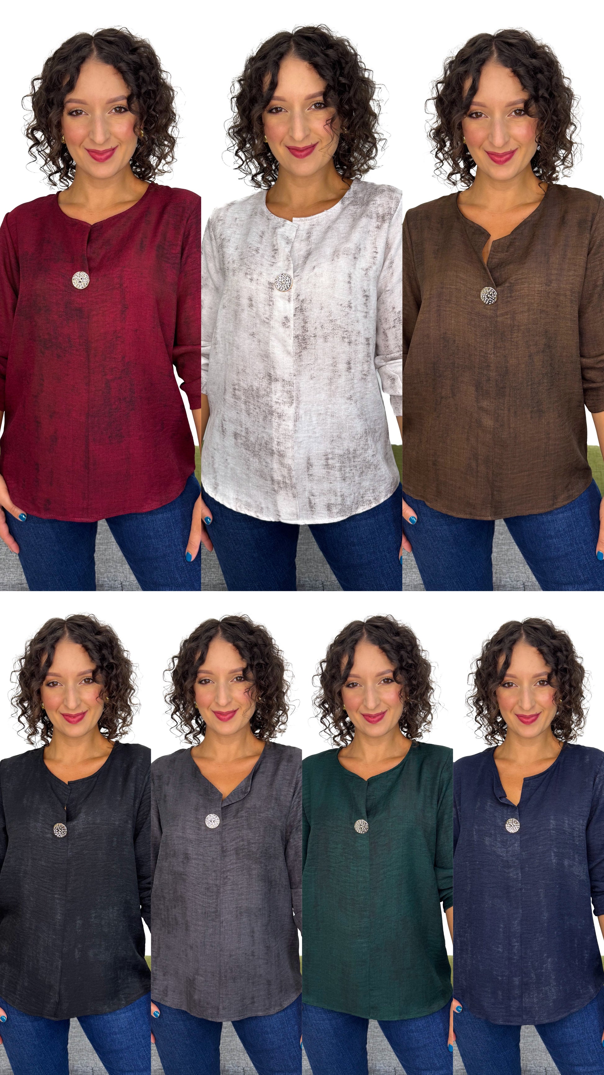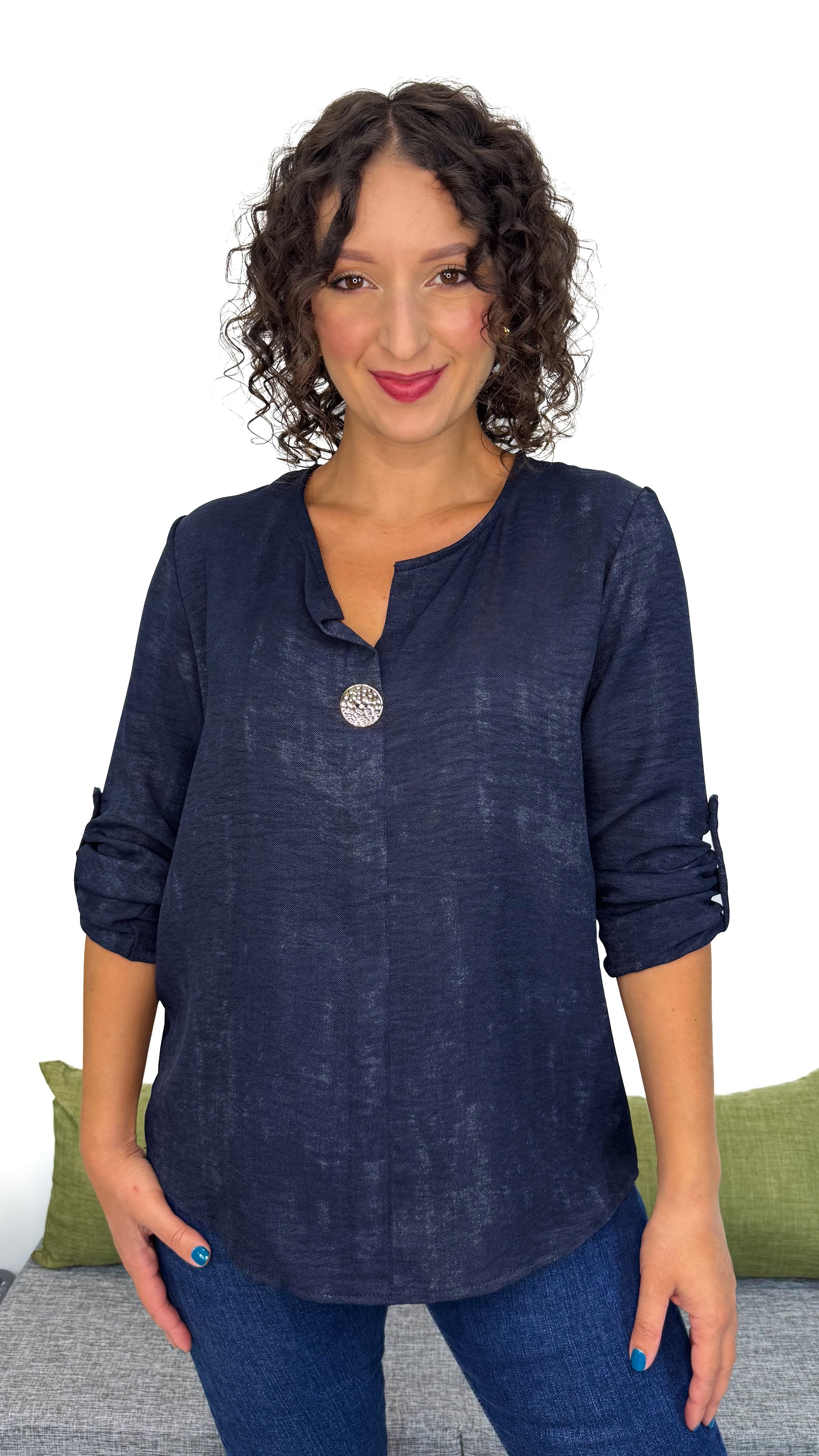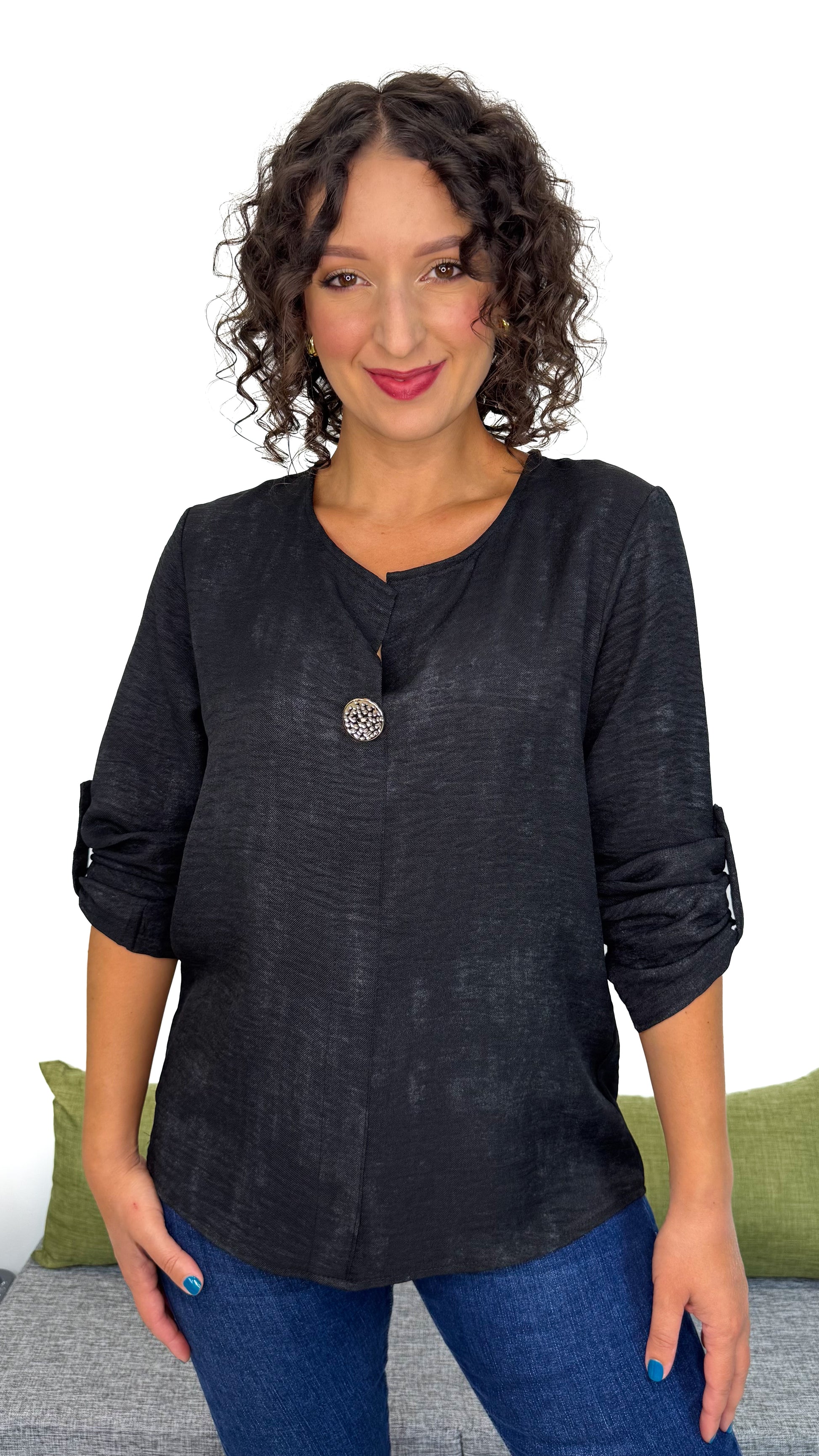 - Dettaglio prezioso: bottone oro decorativo che illumina il viso ✨