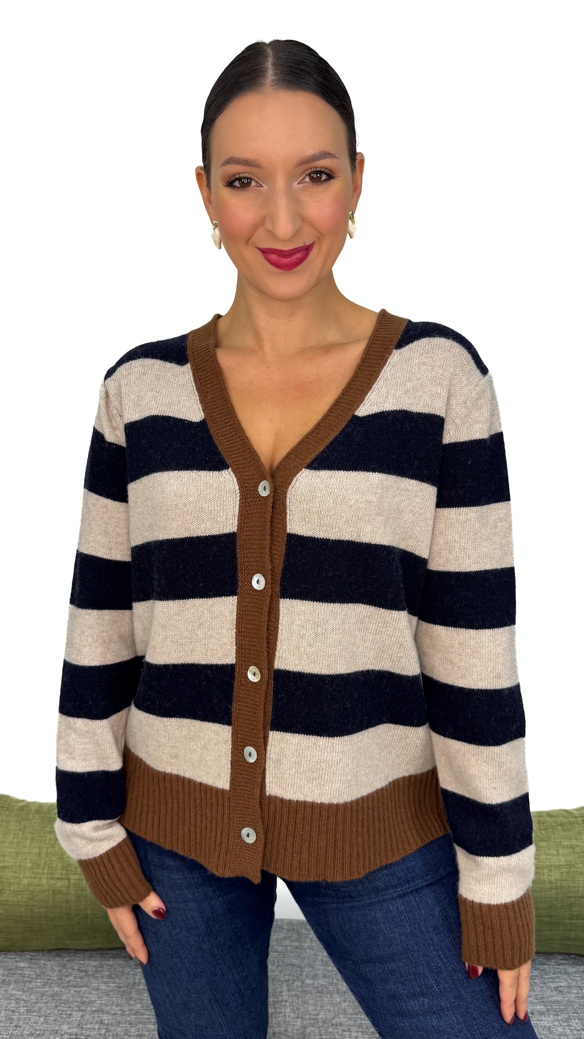 Un cardigan versatile e pieno di stile, perfetto per dare un twist moderno ai tuoi look quotidiani senza rinunciare al comfort.