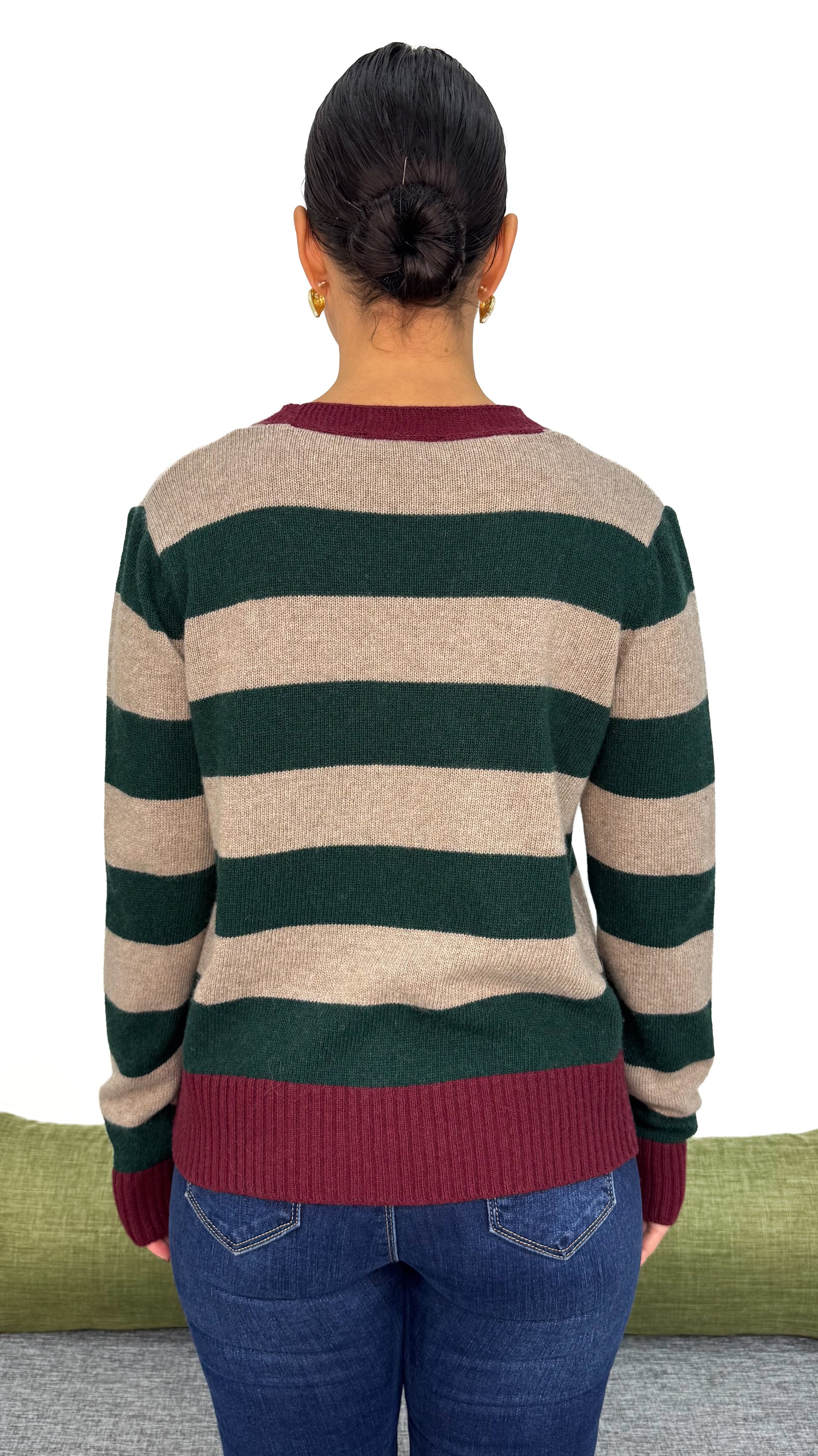 Un capo che conquista al primo sguardo e che diventerà il tuo alleato di stile per tutta la stagione. Il suo tessuto misto cashmere è morbido, caldo e piacevole al tatto: una vera coccola da indossare ogni giorno. Le righe giocano con un trio di colori super grintosi e di tendenza, perfetti per dare carattere anche ai look più semplici.
