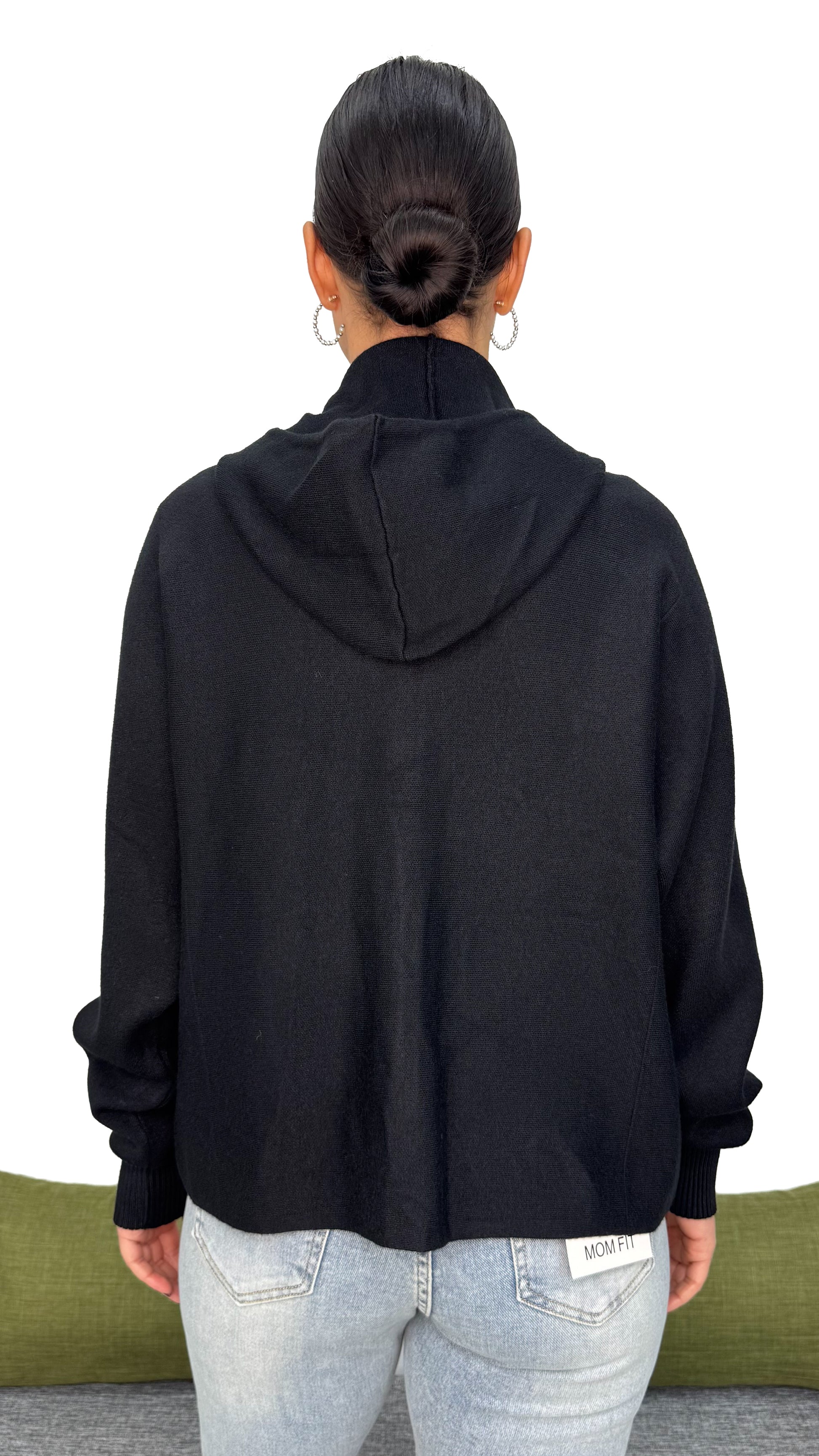 Un capo 3 in 1: la praticità di una felpa con cappuccio, la versatilità di un cardigan, e il calore di una maglia in tessuto morbido e soffice.