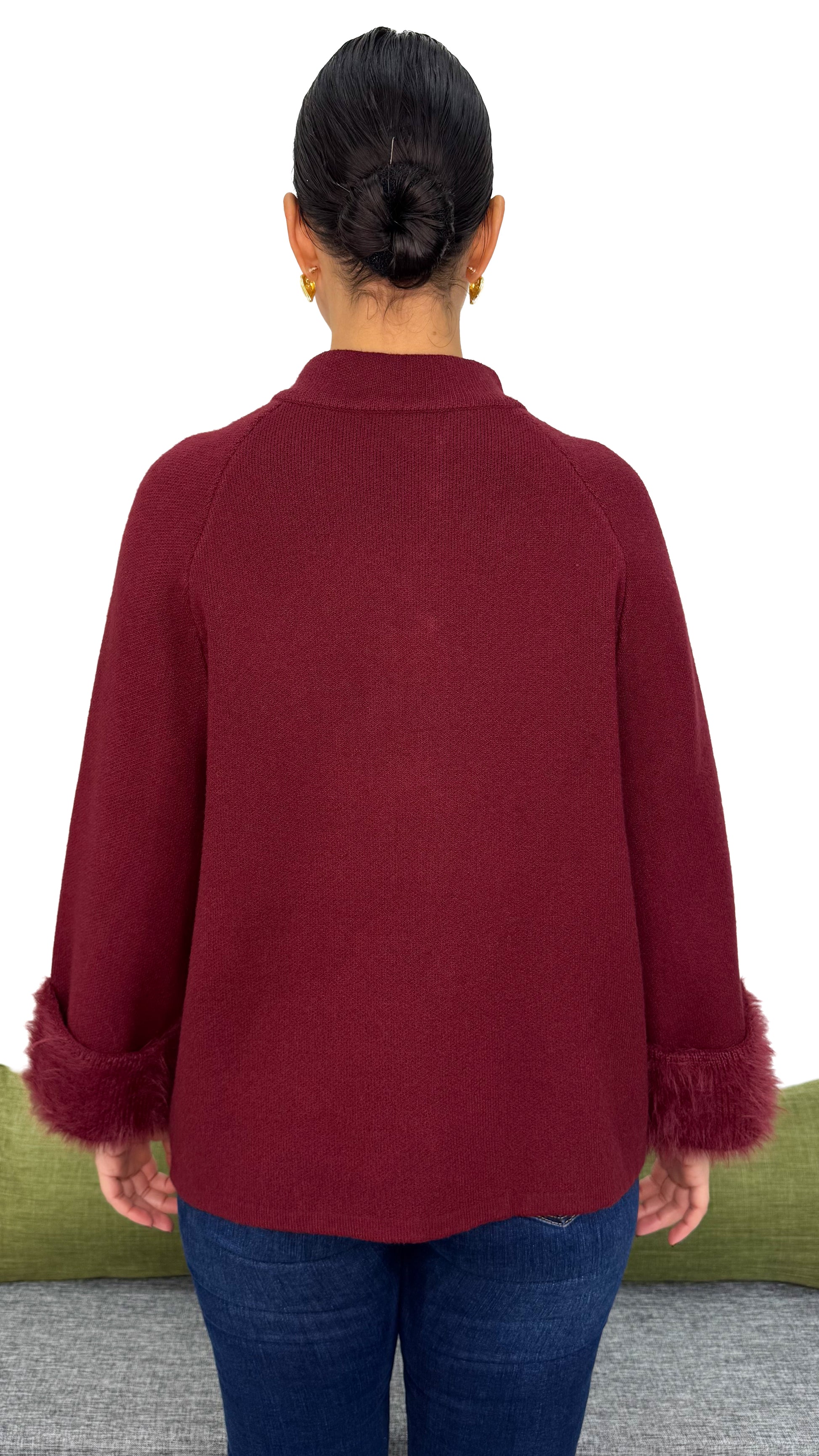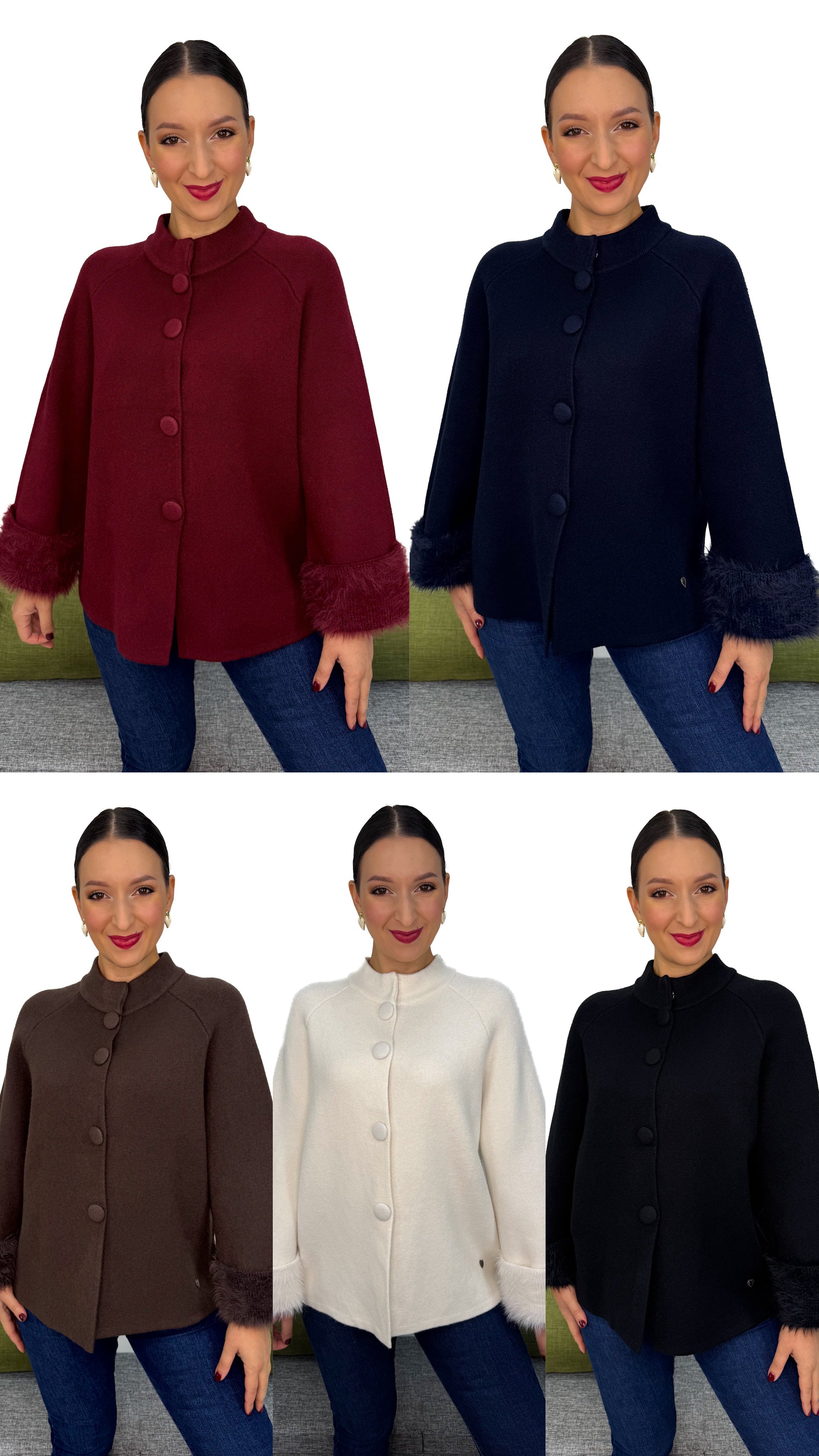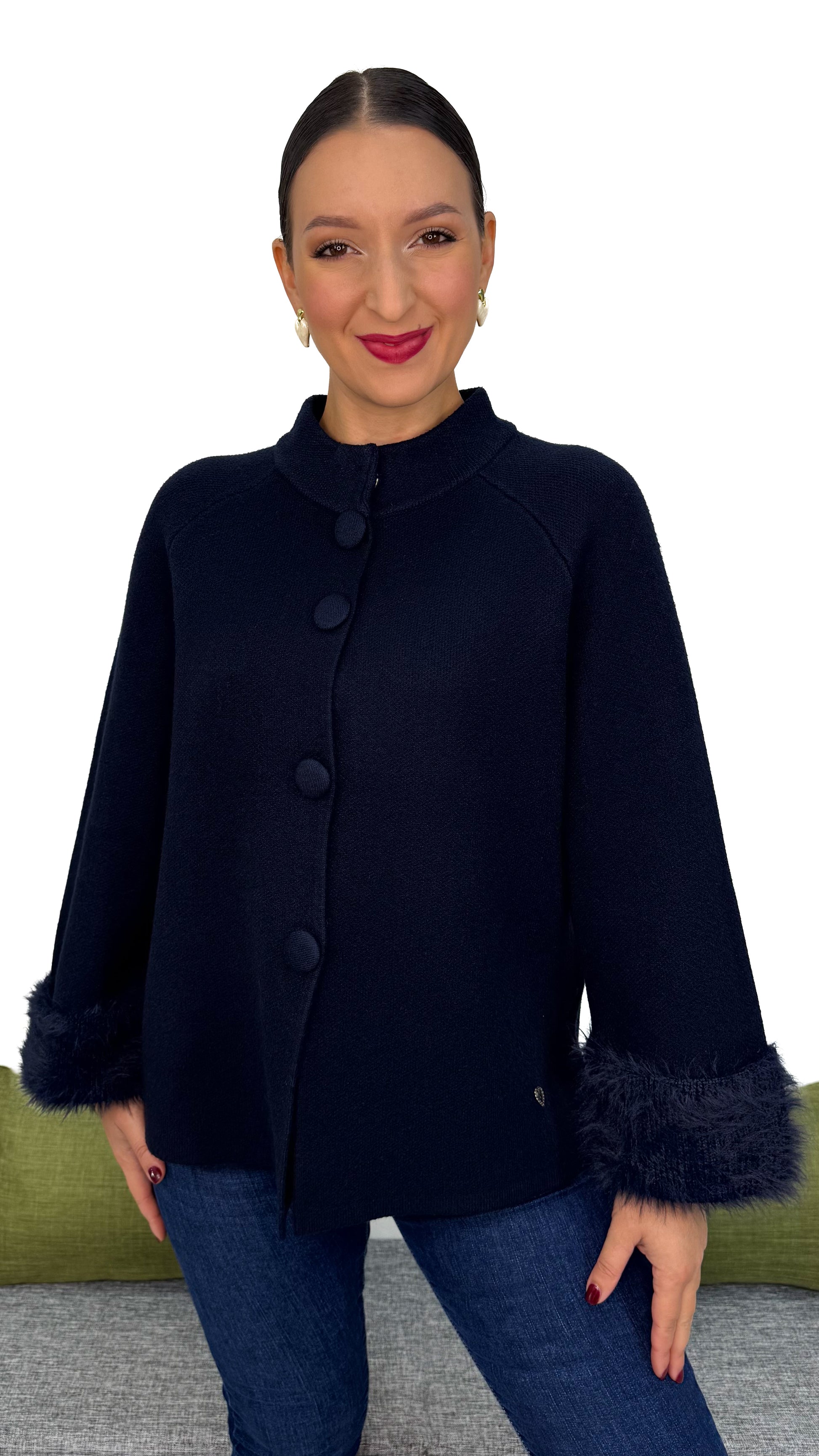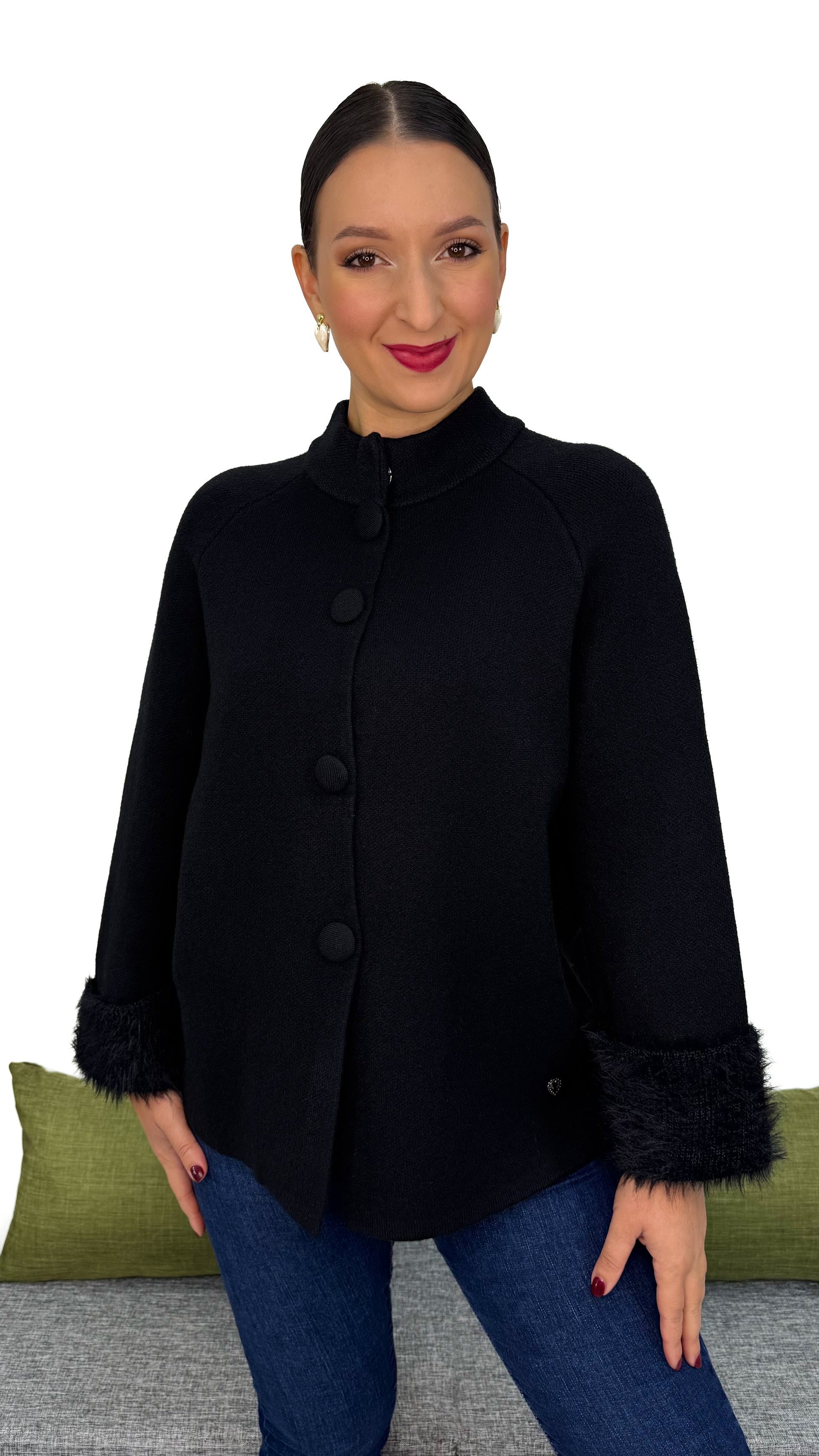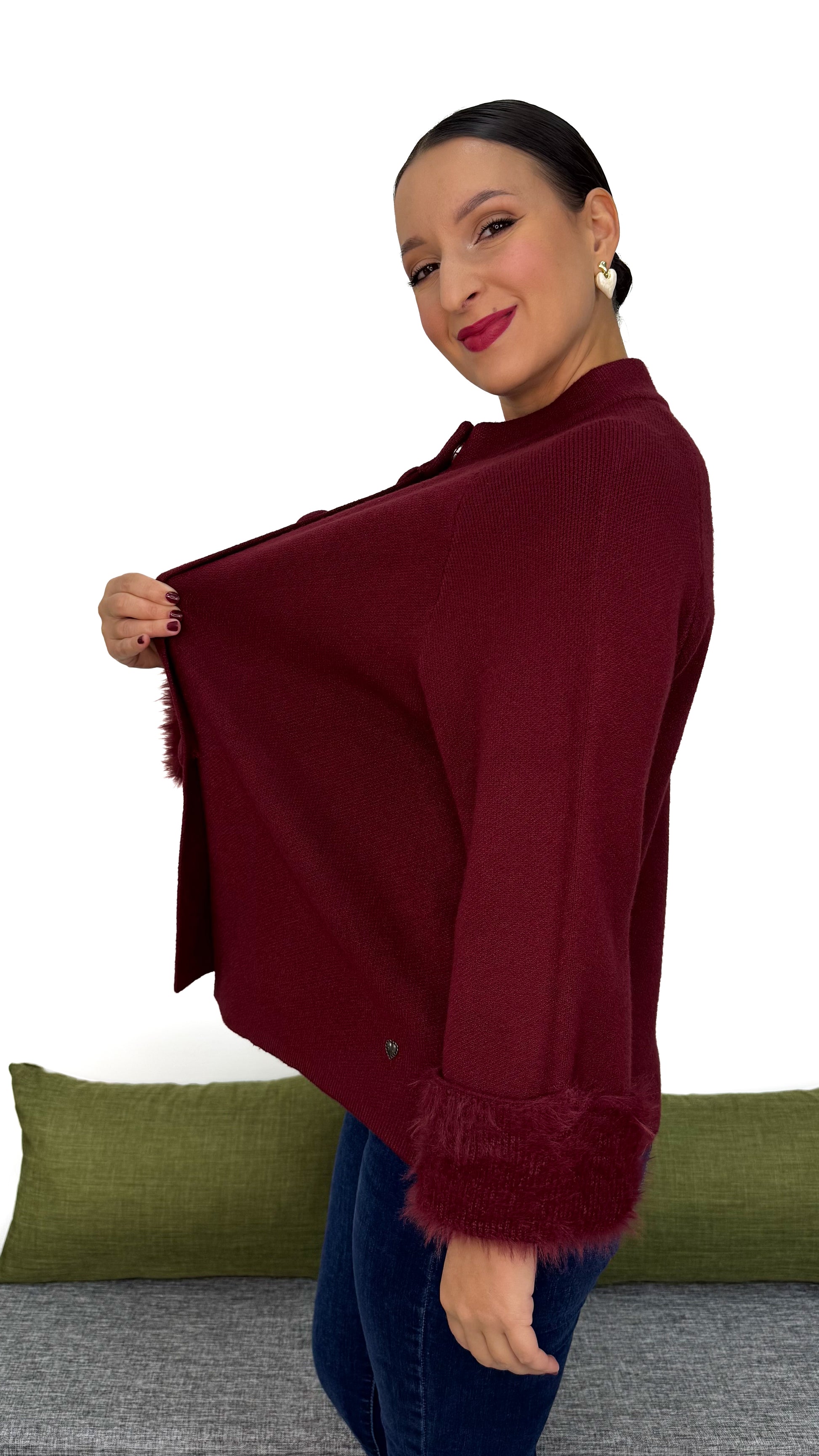 CARDIGAN CON MANICHE SVASATE E DETTAGLIO IN PELUCHE