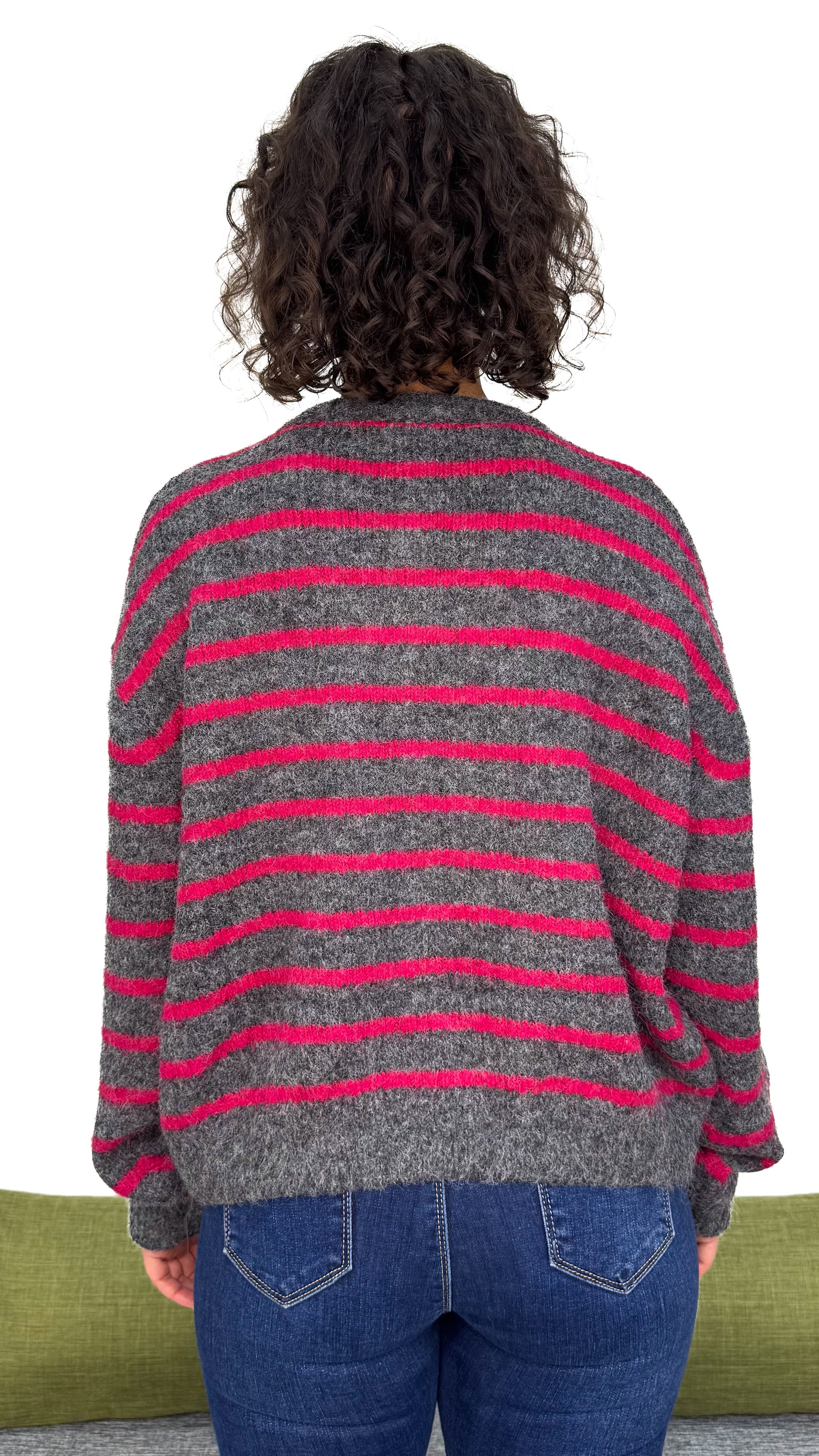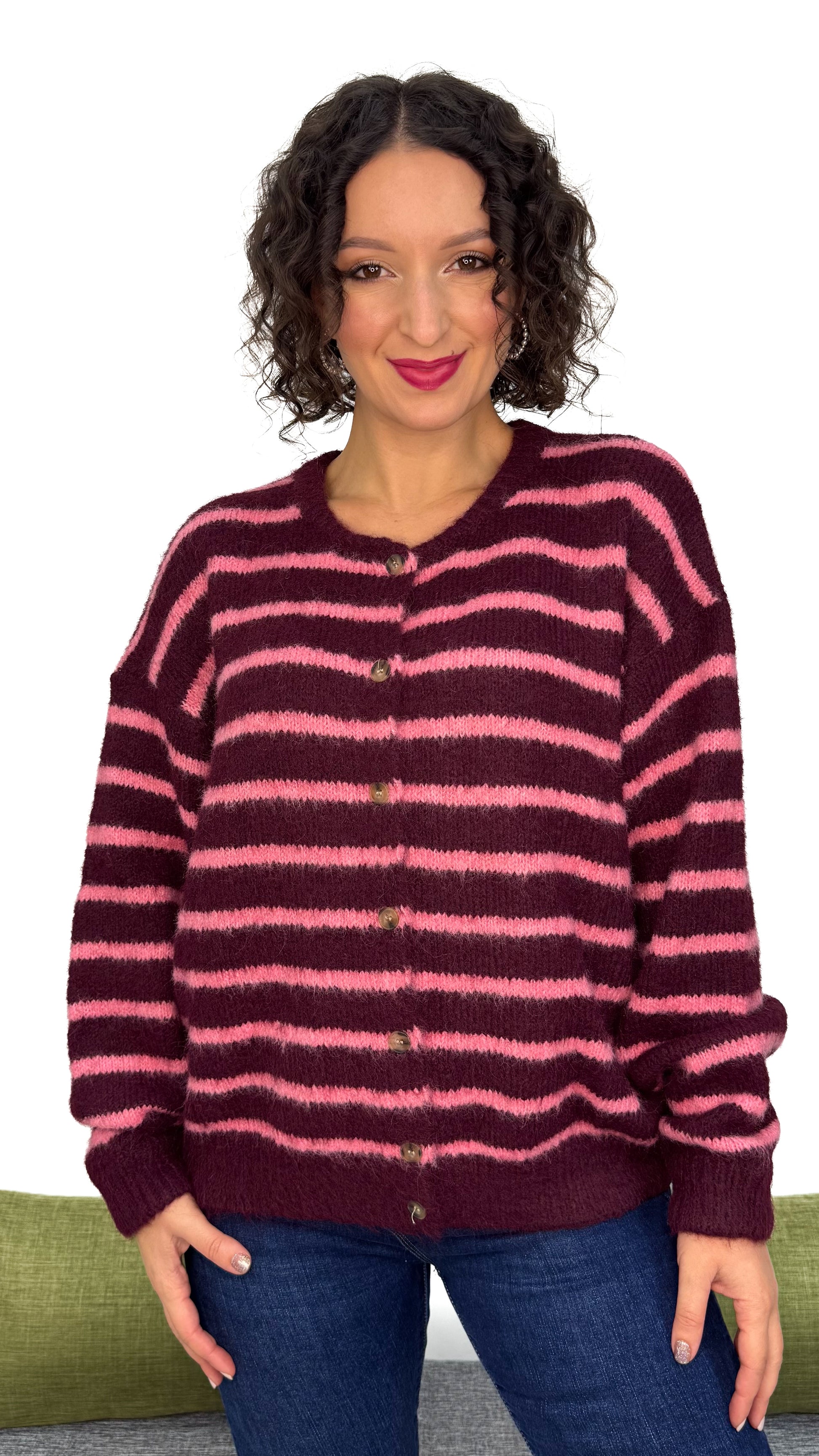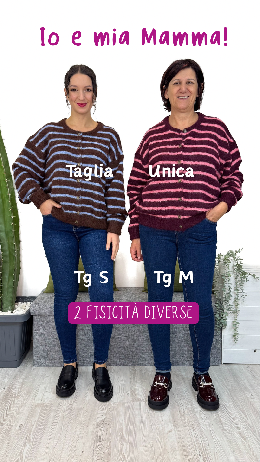 CARDIGAN RIGHE PARIS — un cardigan super caldo morbido e soffice che sembra una vera coccola! La linea morbida e le righe ispirate alla moda parigina lo rendono chic, perfetto da indossare ogni giorno quando vuoi sentirti comoda ma allo stesso tempo curata