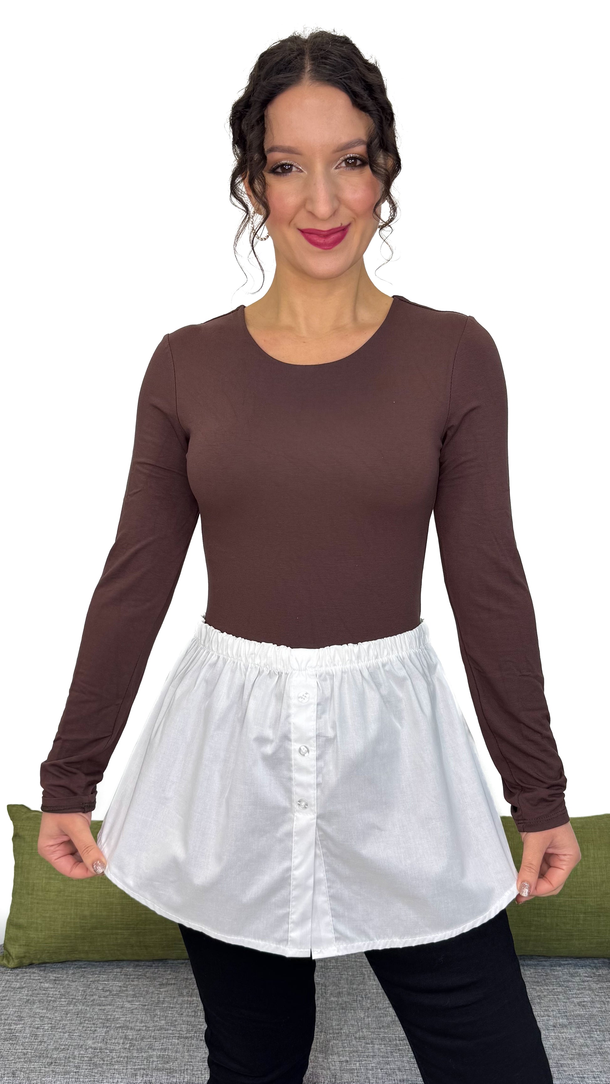 Questo capo è una rivoluzione! Non bisogna per forza indossare una camicia lunga sotto ai nostri maglioni preferiti, ma diventa più pratico e comodo indossare questa GONNA CAMICIA per aggiungere lunghezza e stile!