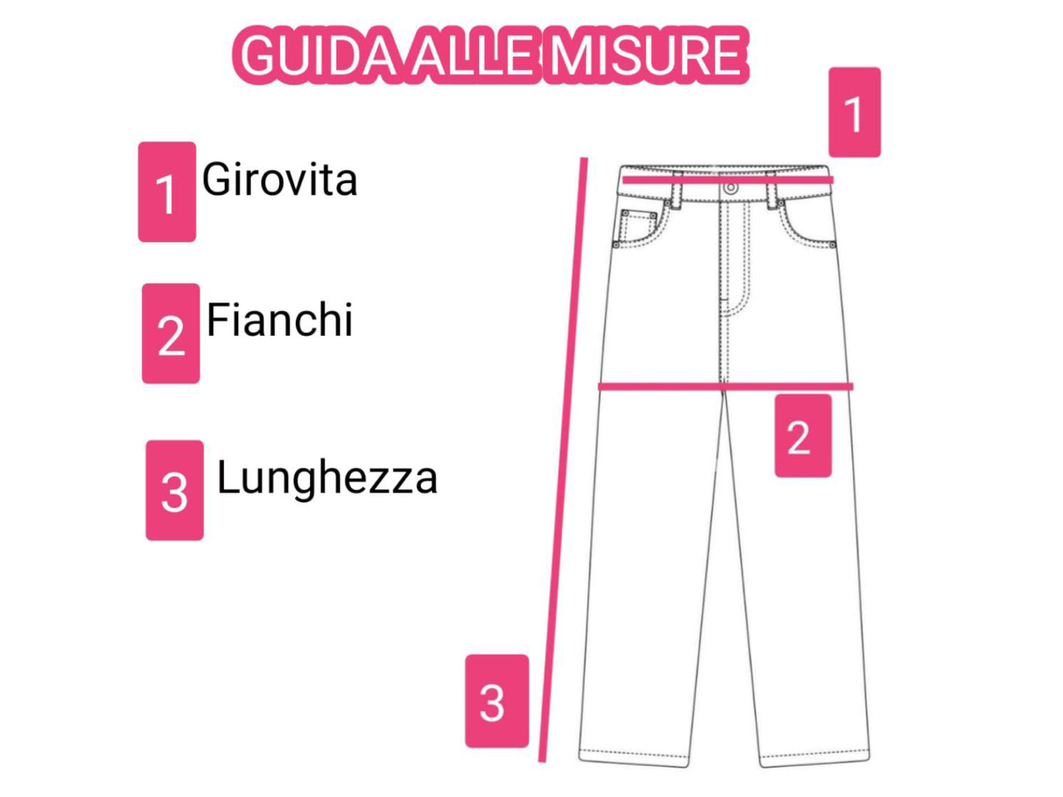 MISURE IN CENTIMETRI (solo sulla parte davanti del jeans):