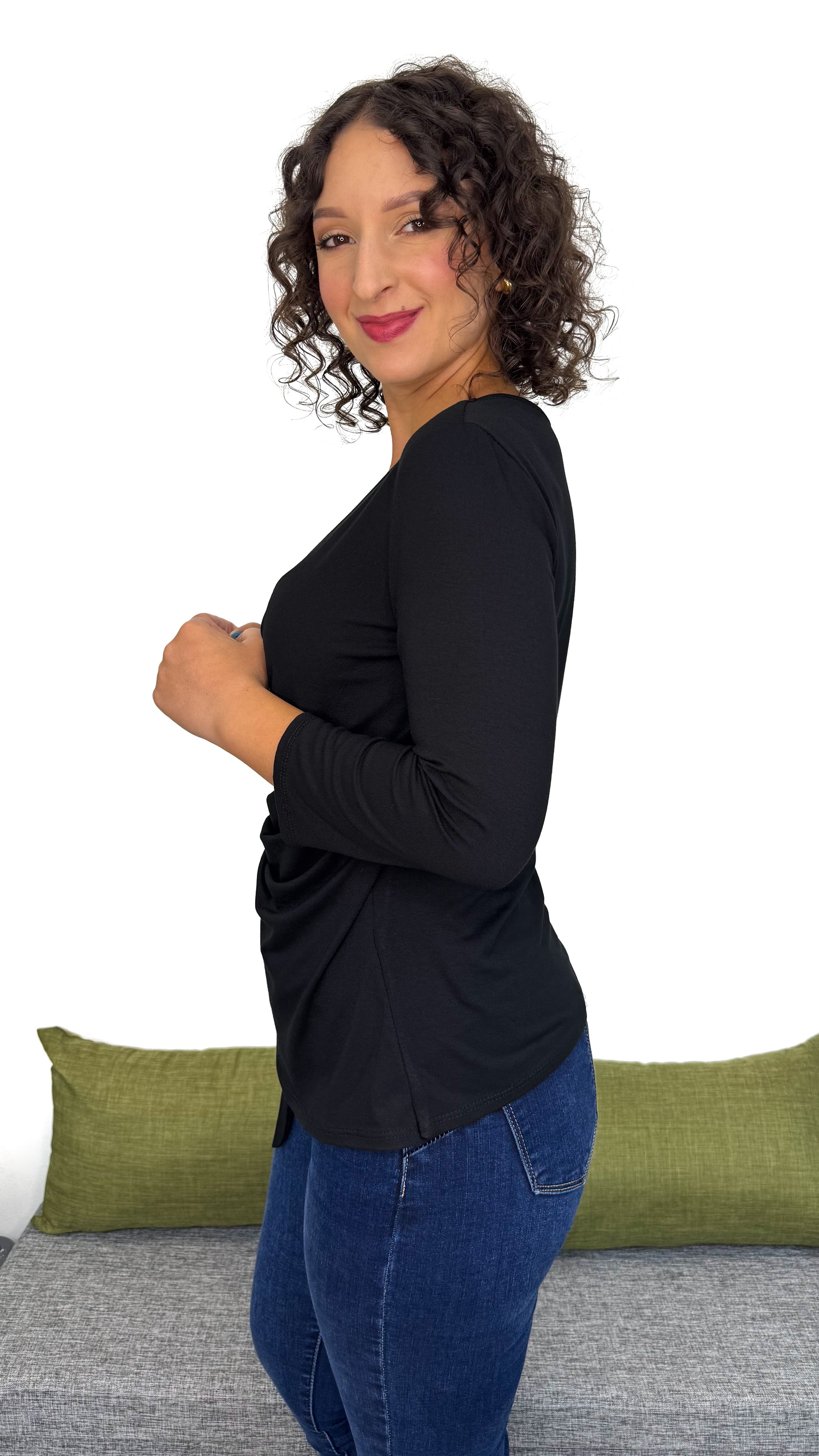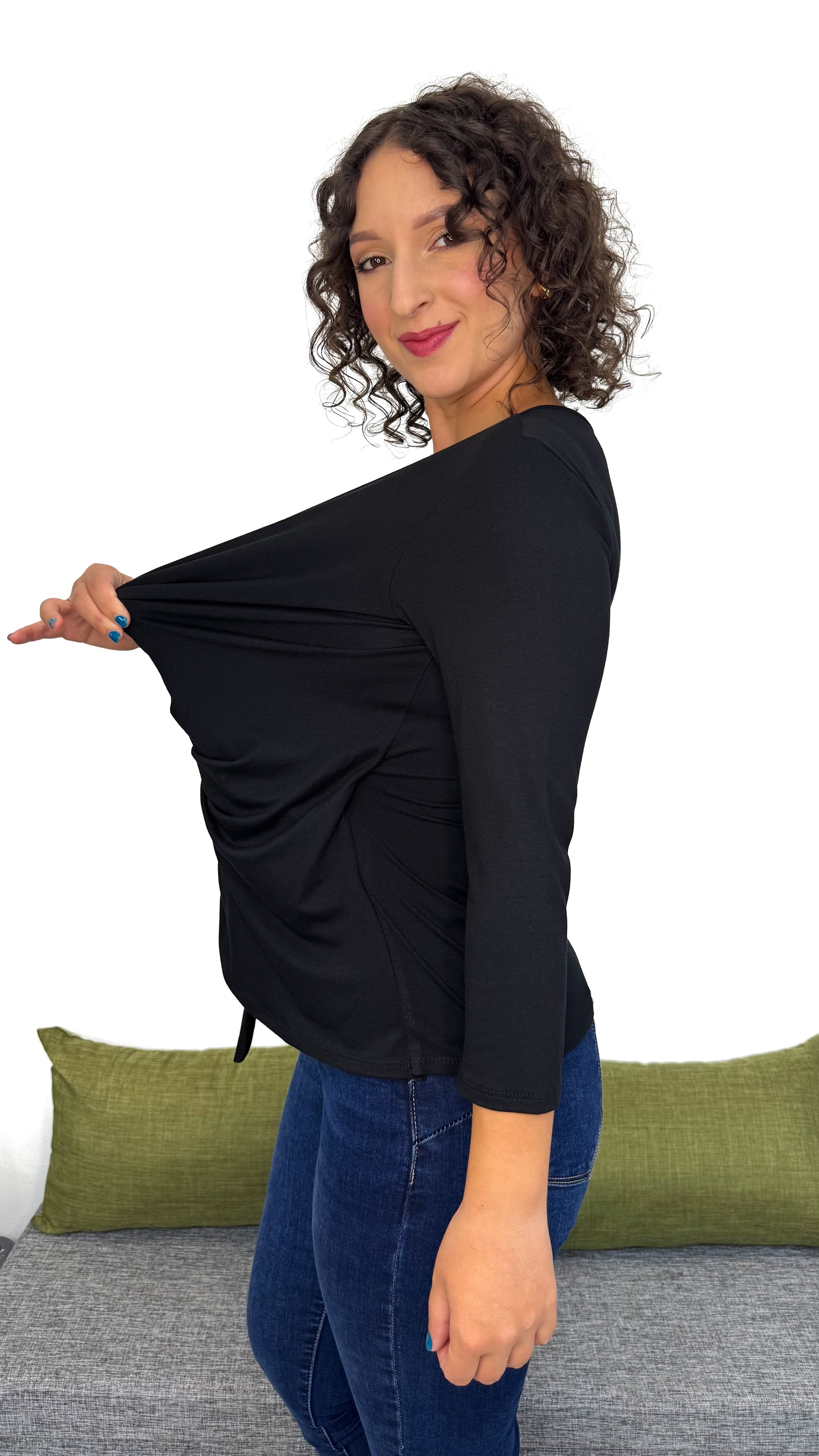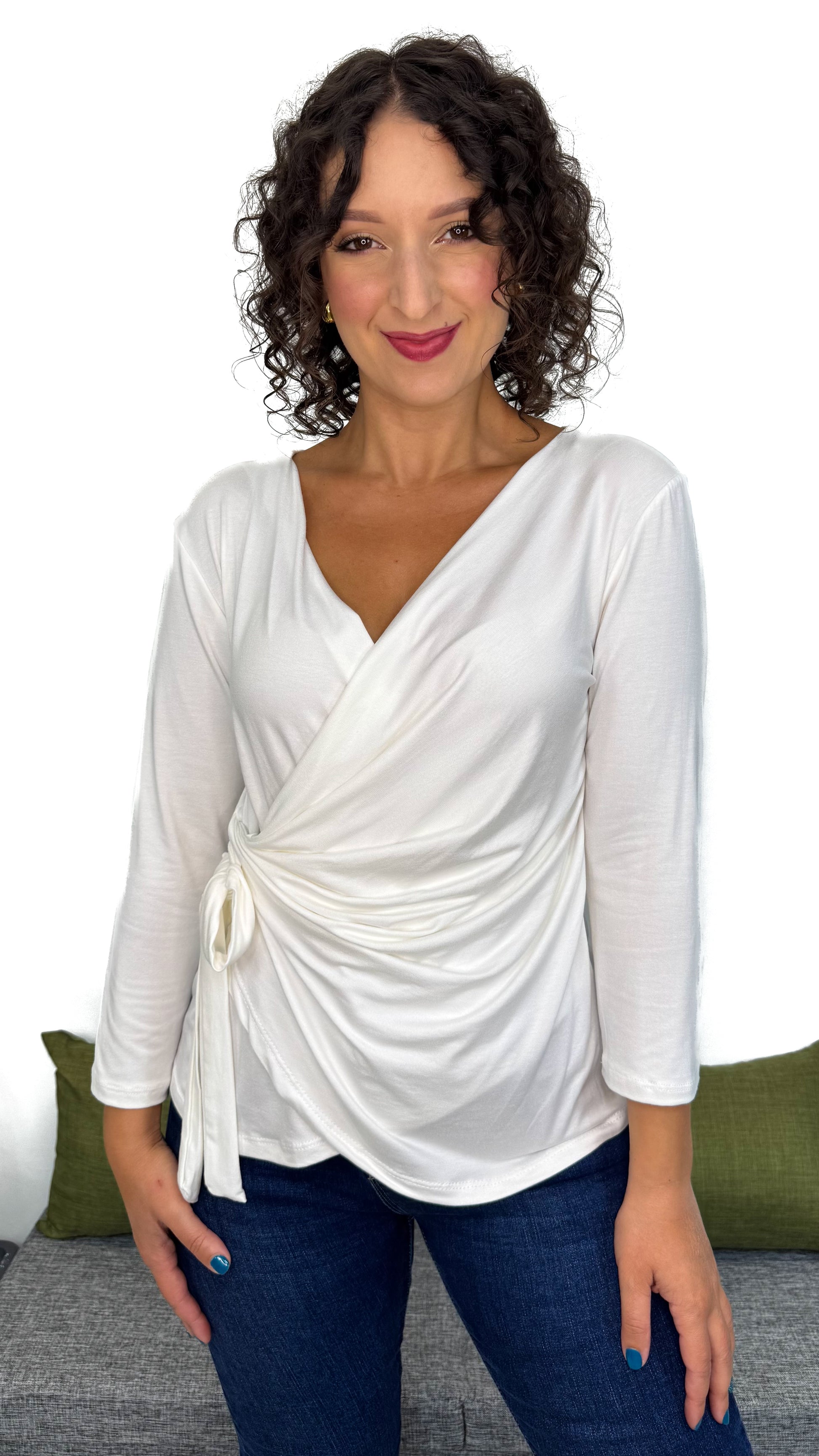 - Zero pensieri: sembra una maglia incrociata, ma non si apre mai! Solo estetica, massimo comfort.