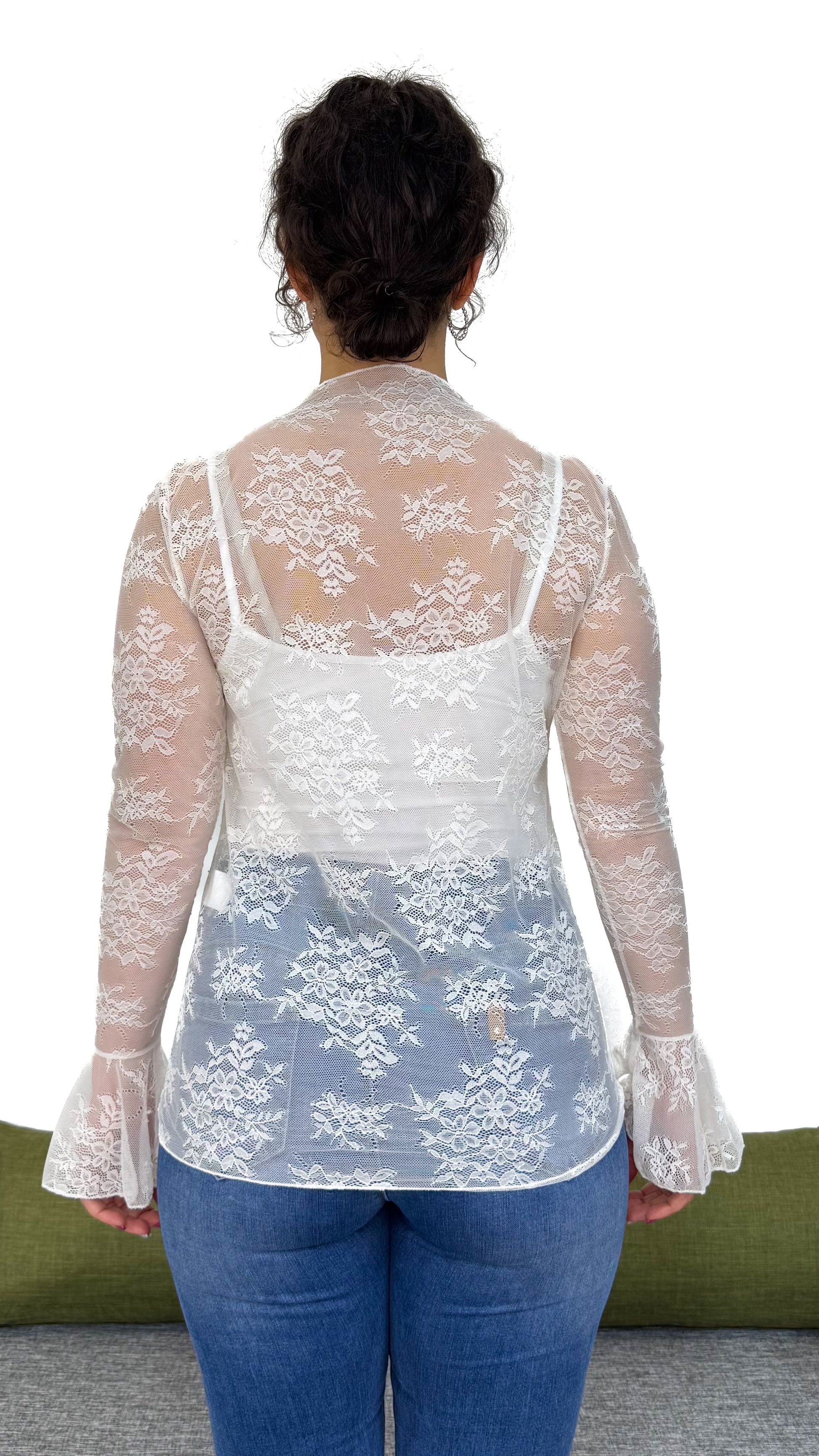 MAGLIA IN PIZZO BIANCA CON MANICHE VOLANT