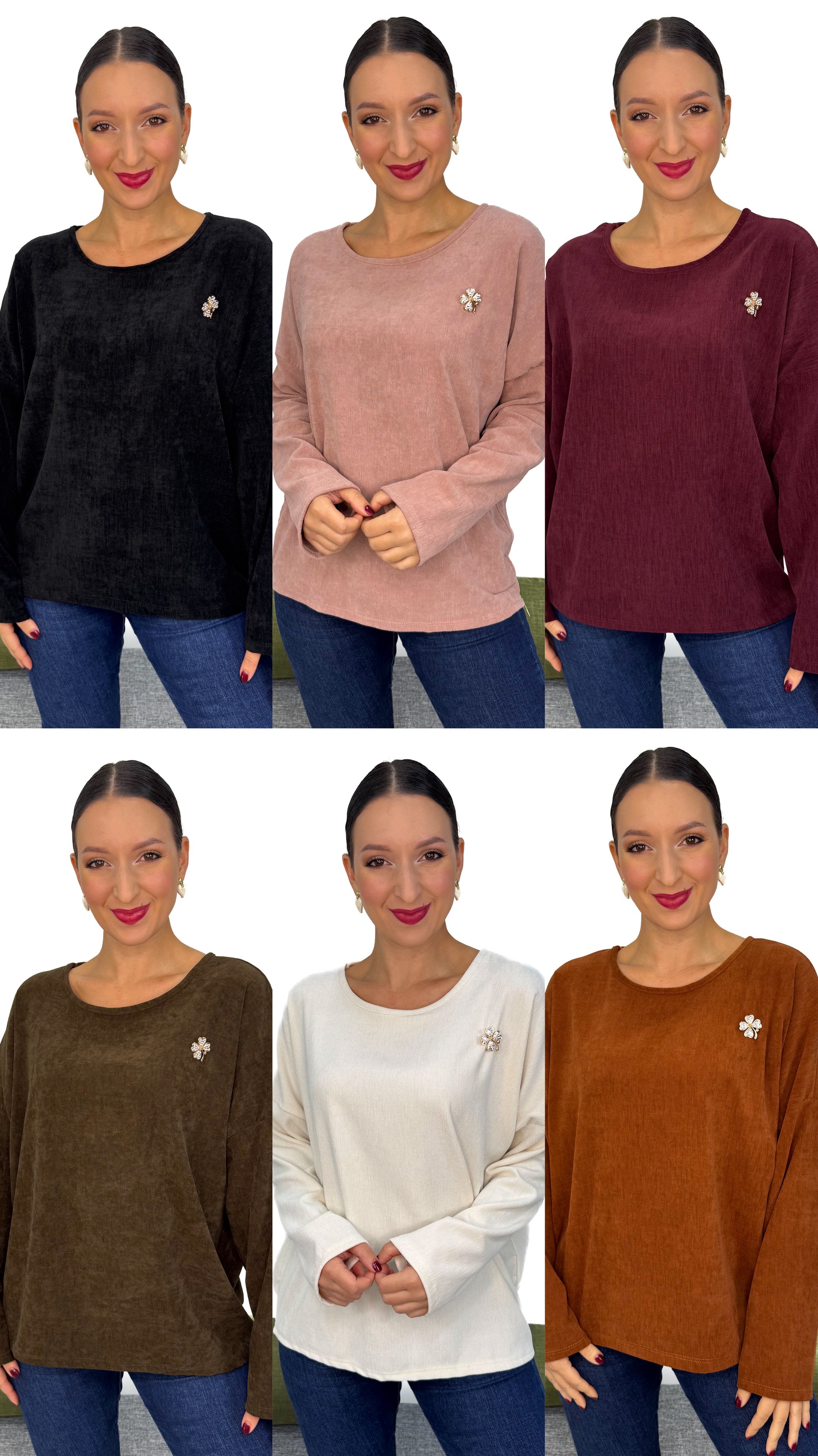 MAGLIA IN VELLUTO MORBIDO CON SPILLA QUADRIFOGLIO