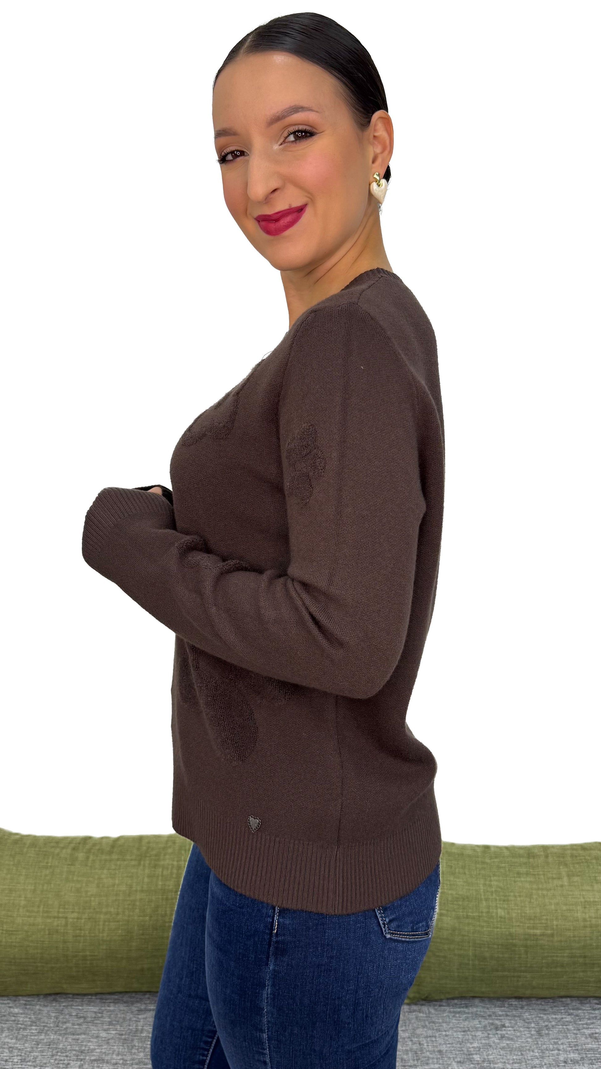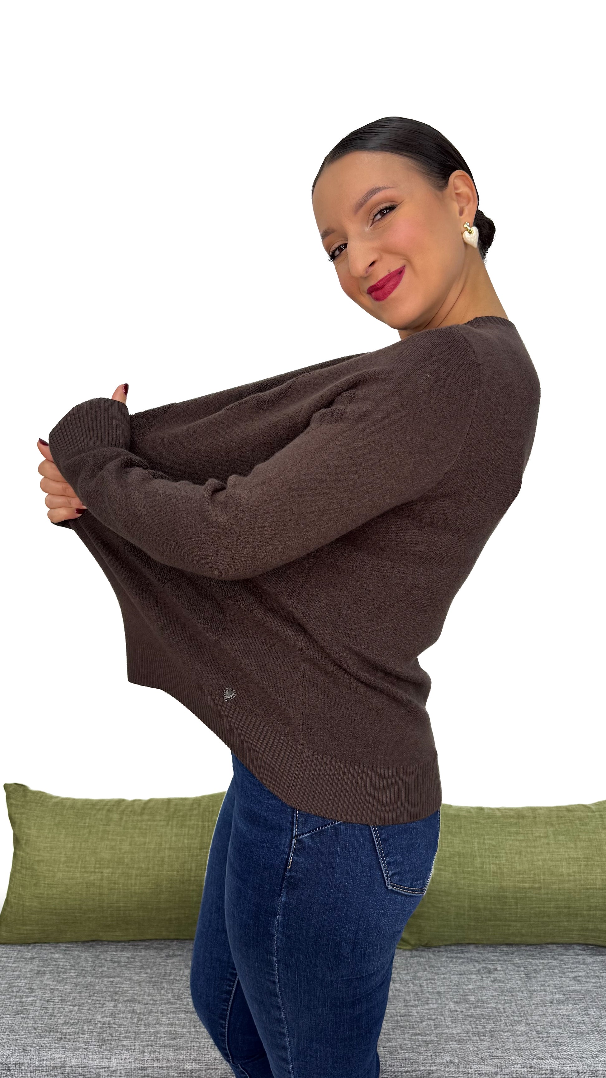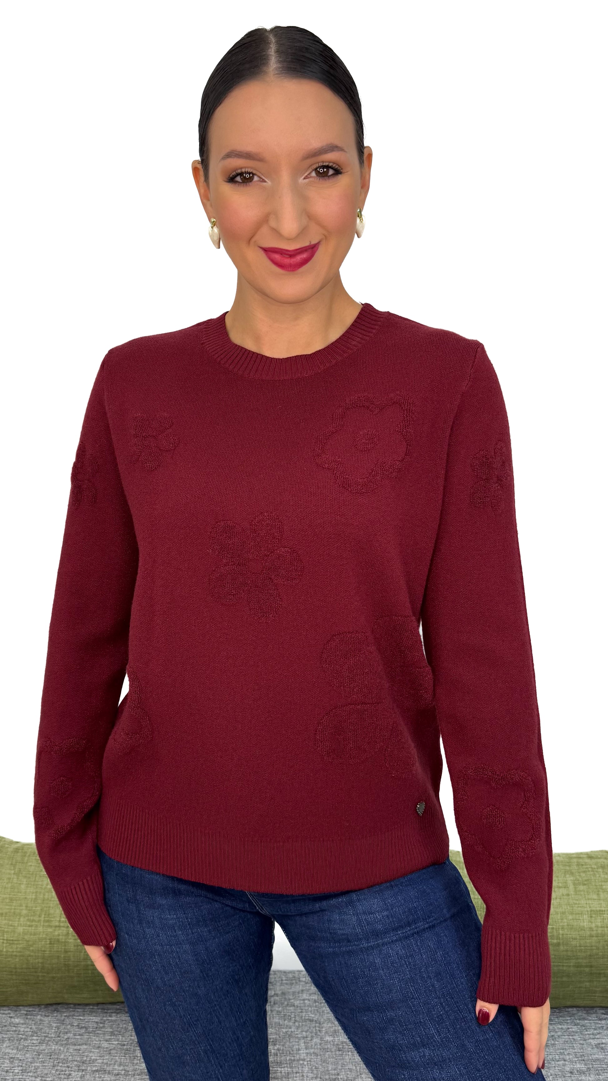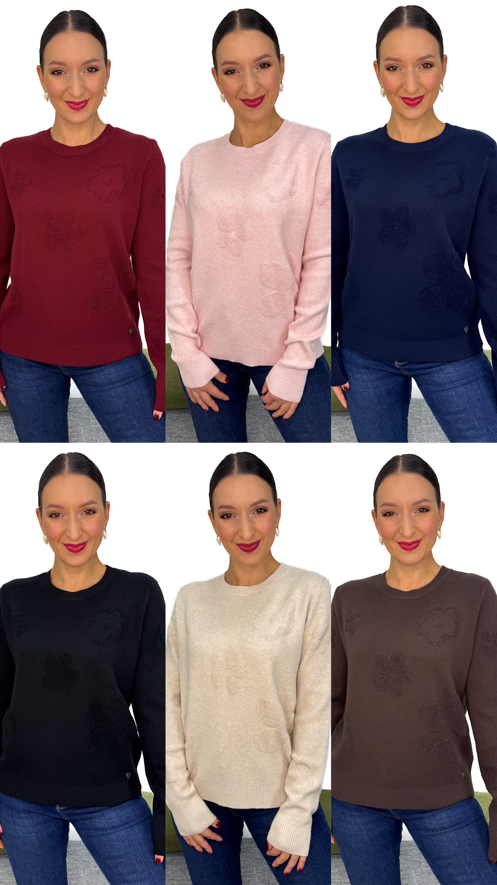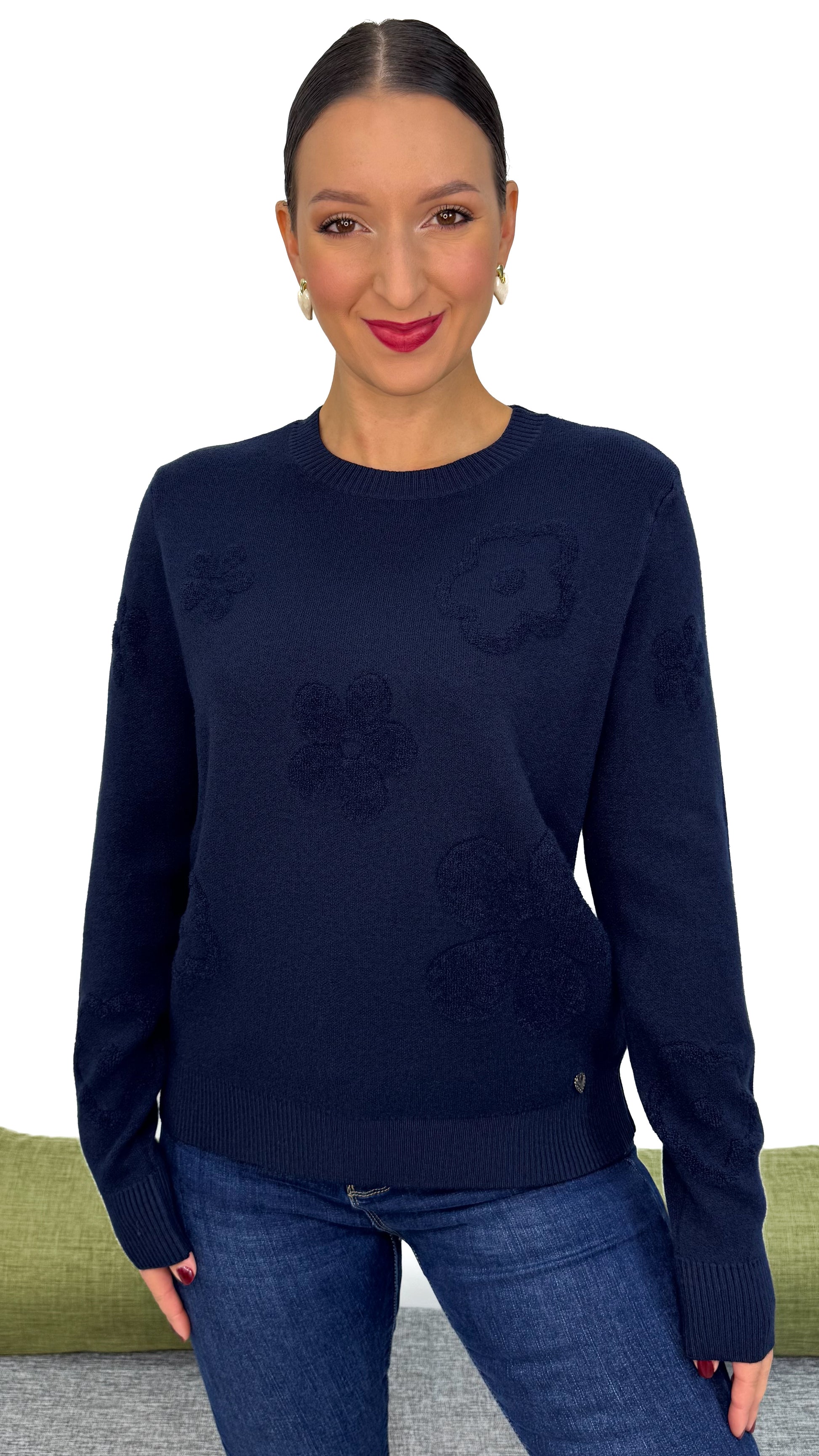 Un maglioncino che sembra uscito da un sogno, curato in ogni dettaglio per farti sentire bella e raffinata in ogni occasione. I fiori in rilievo di varie dimensioni lo rendono unico e femminile, un piccolo capolavoro di stile che impreziosisce anche il look più semplice.