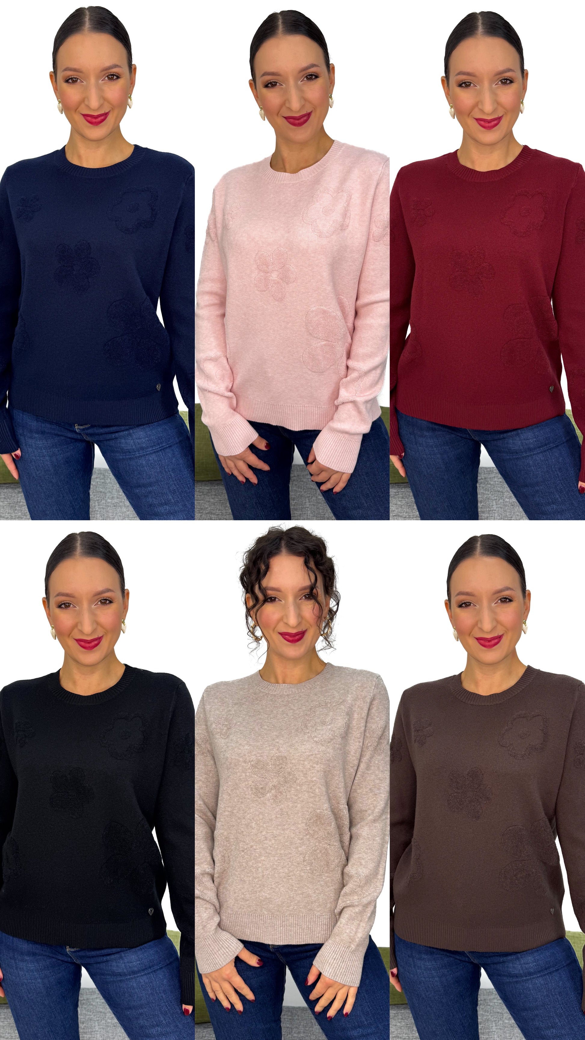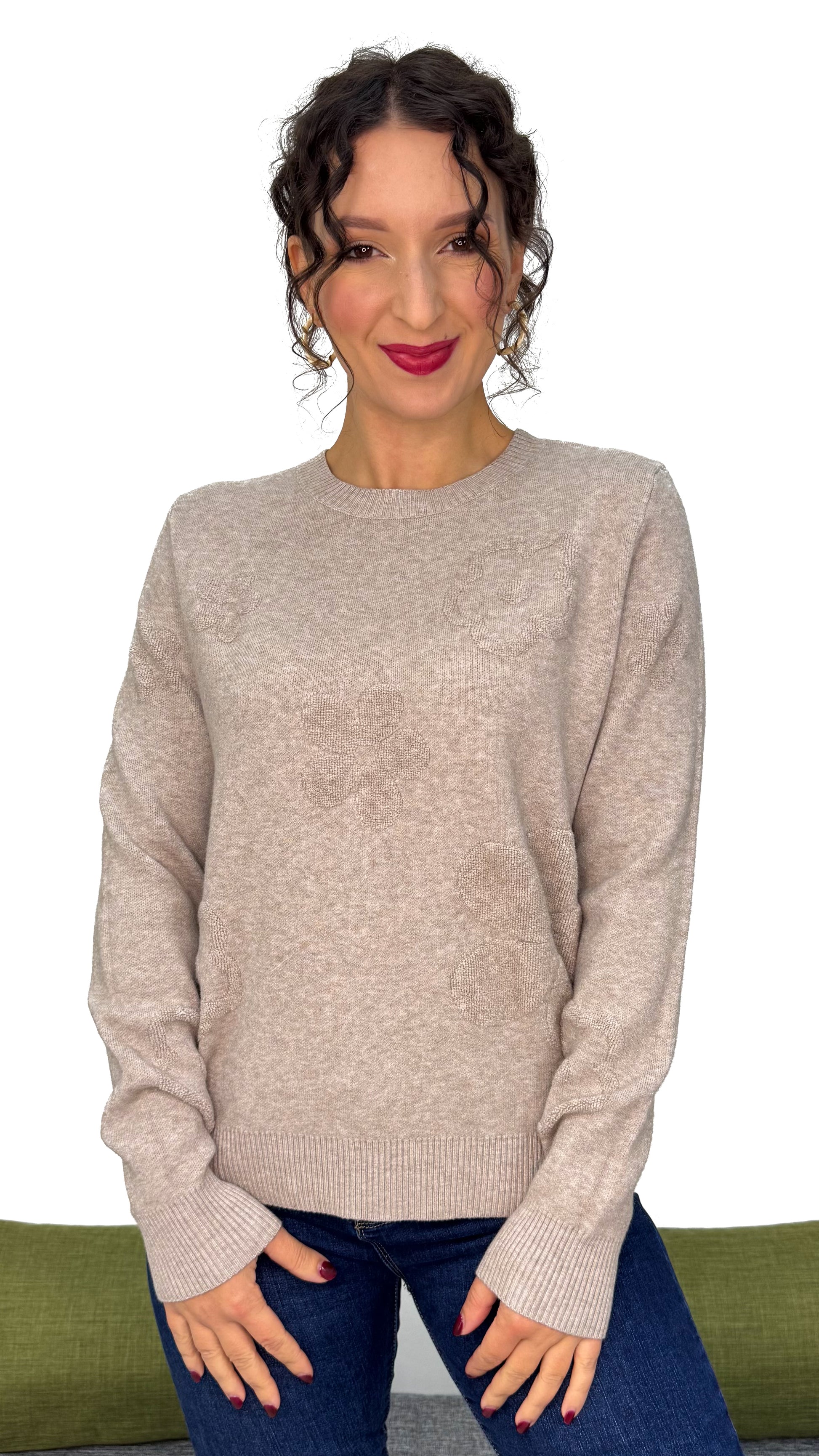 MAGLIONCINO CON FIORI IN RILIEVO - Un maglioncino che sembra uscito da un sogno, curato in ogni dettaglio per farti sentire bella e raffinata in ogni occasione.