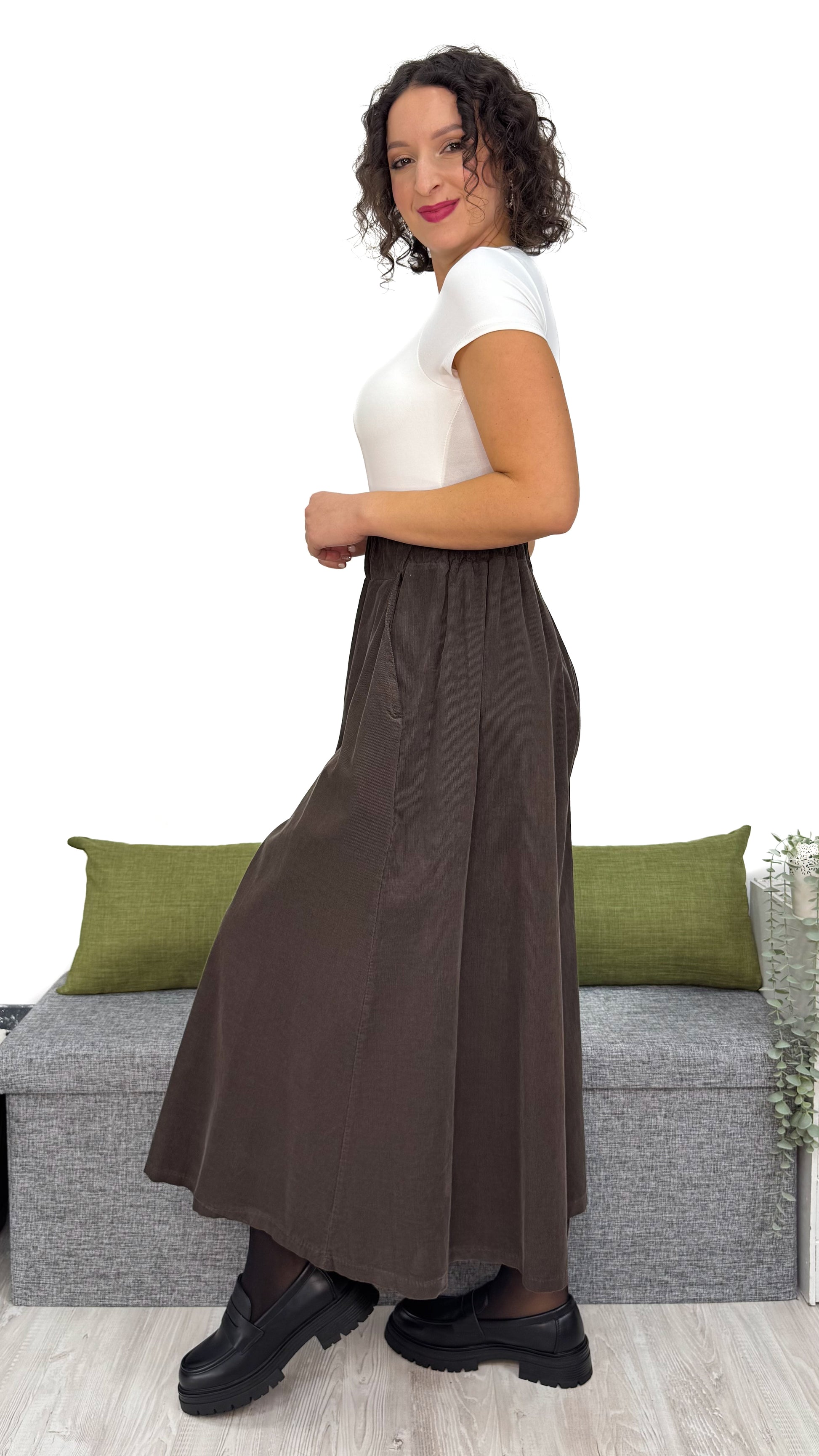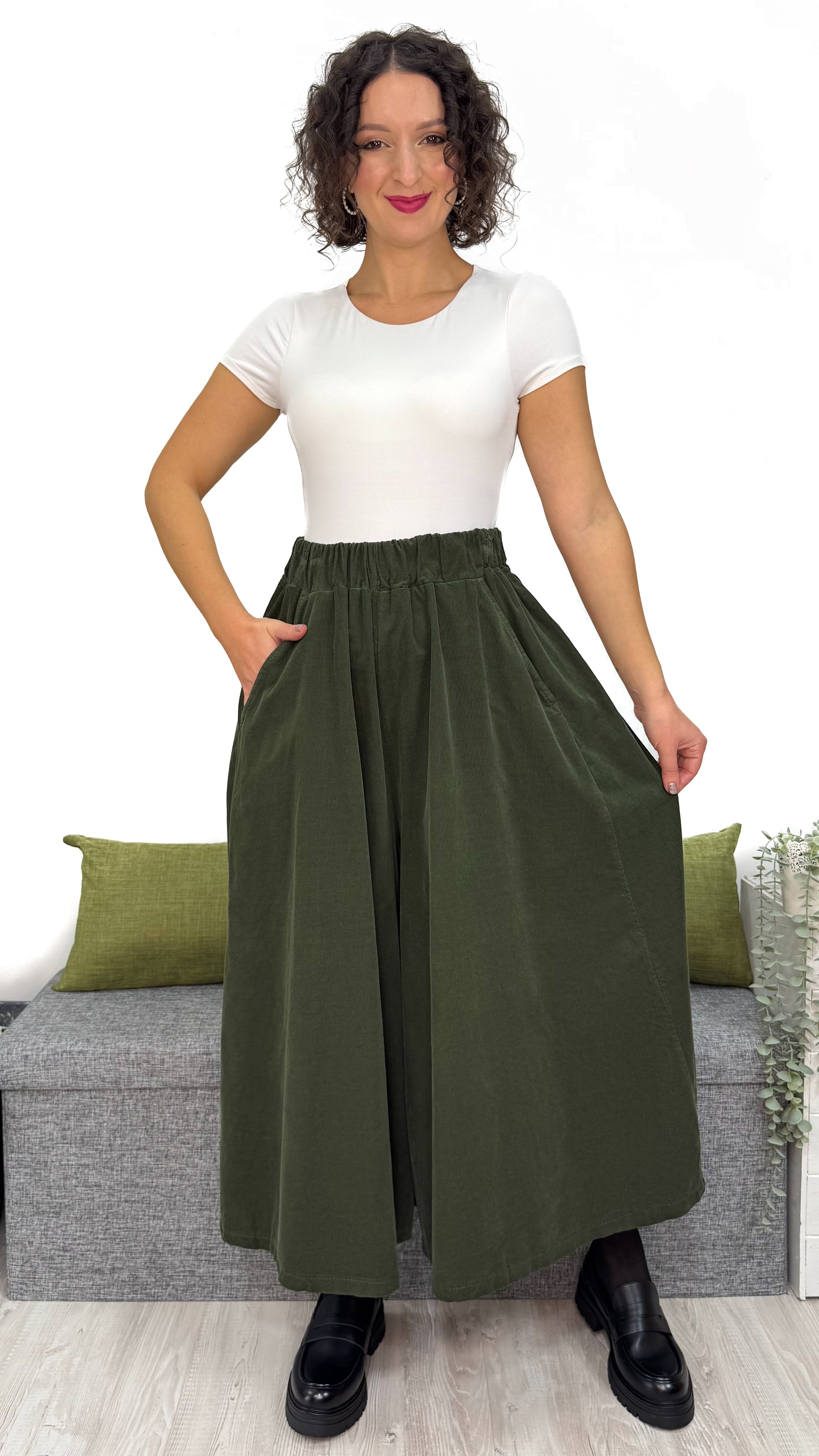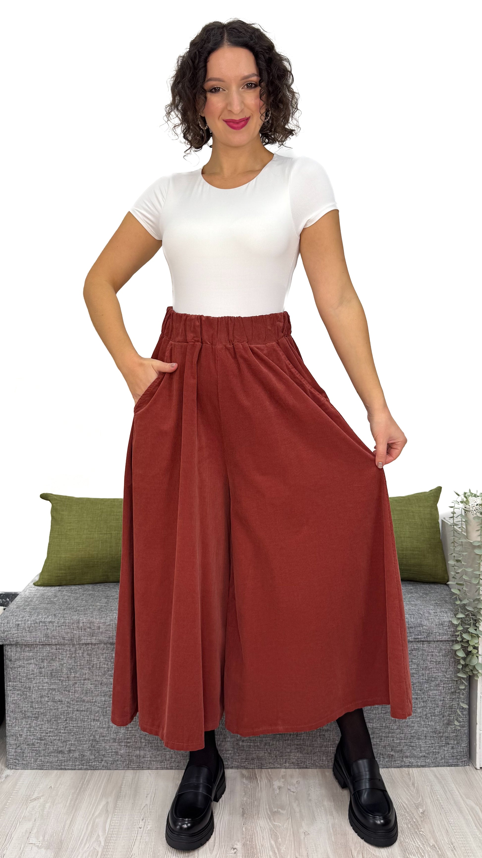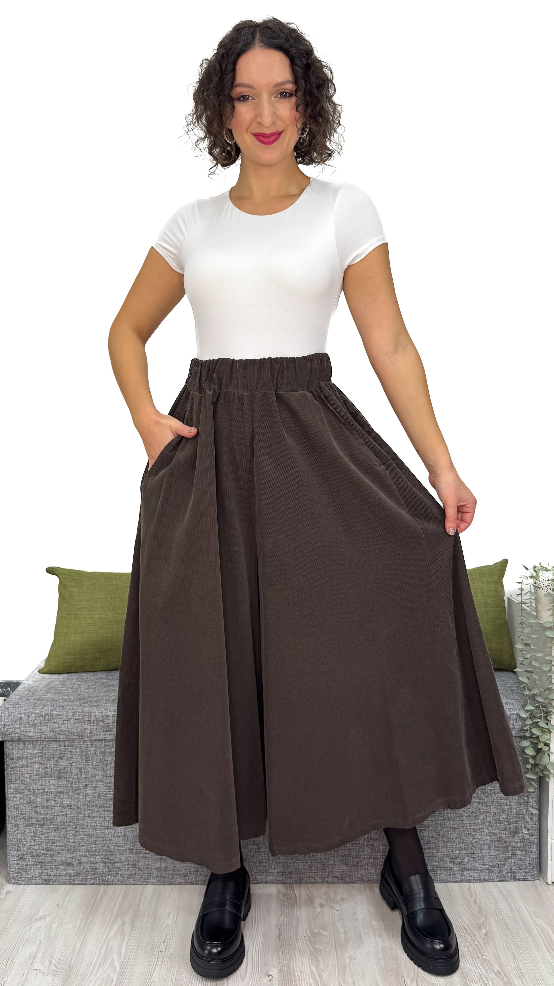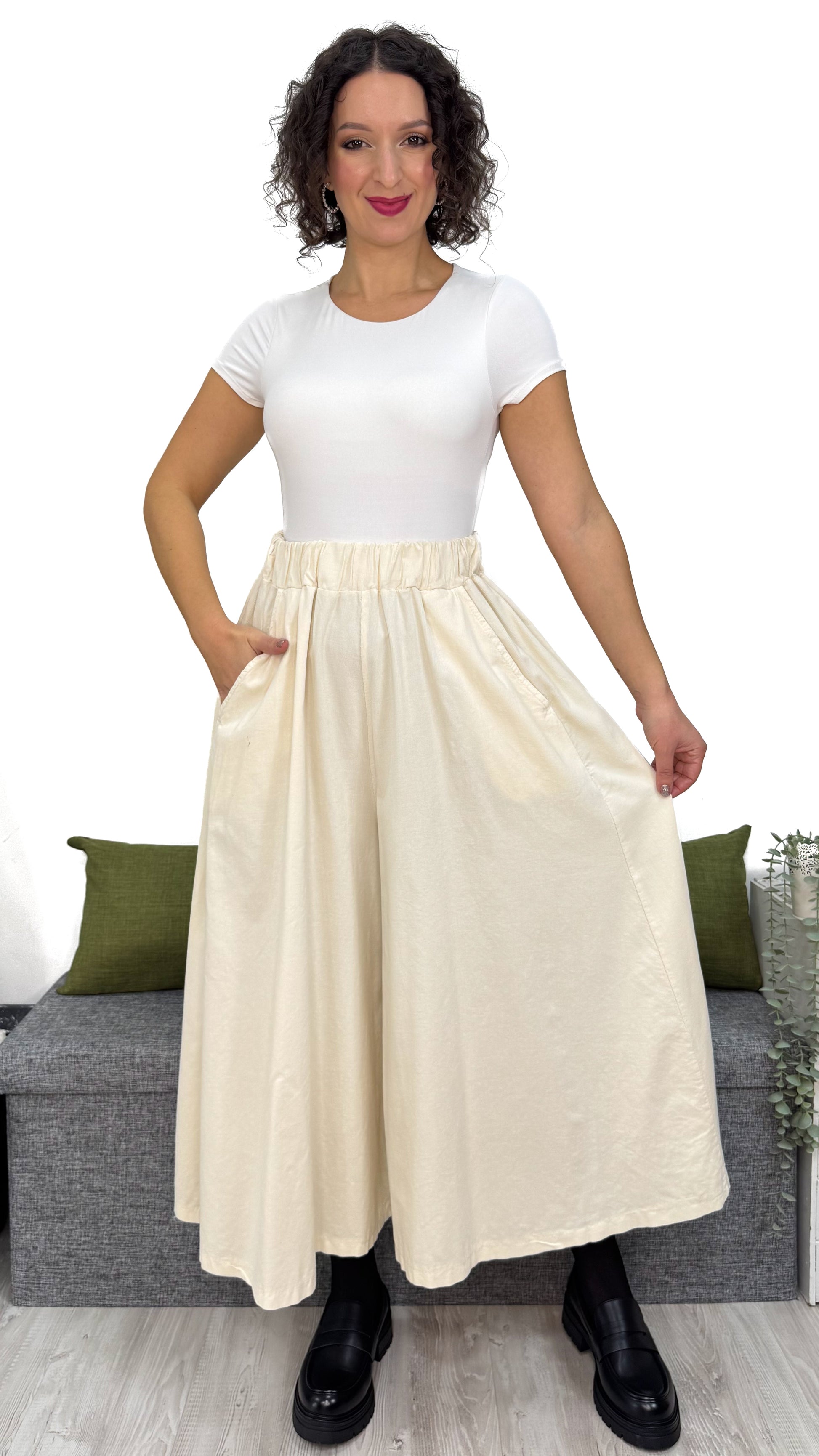 Incredibile davvero ✨: questo PANTALONE ha un EFFETTO GONNA pazzesco, una comodità che crea dipendenza e un tessuto che parla da solo — 100% cotone di qualità, caldo, resistente e perfetto per ogni momento della giornata.