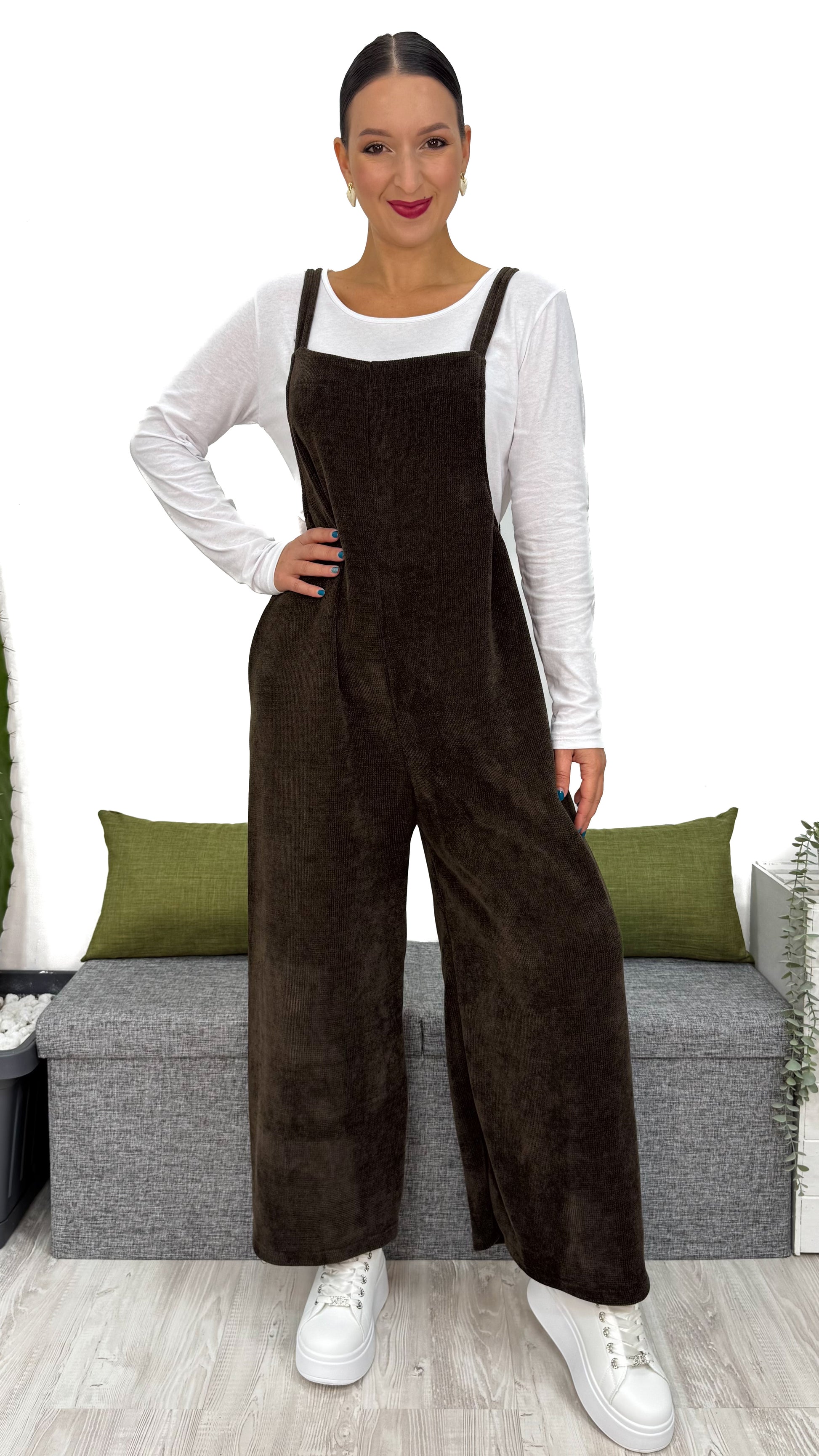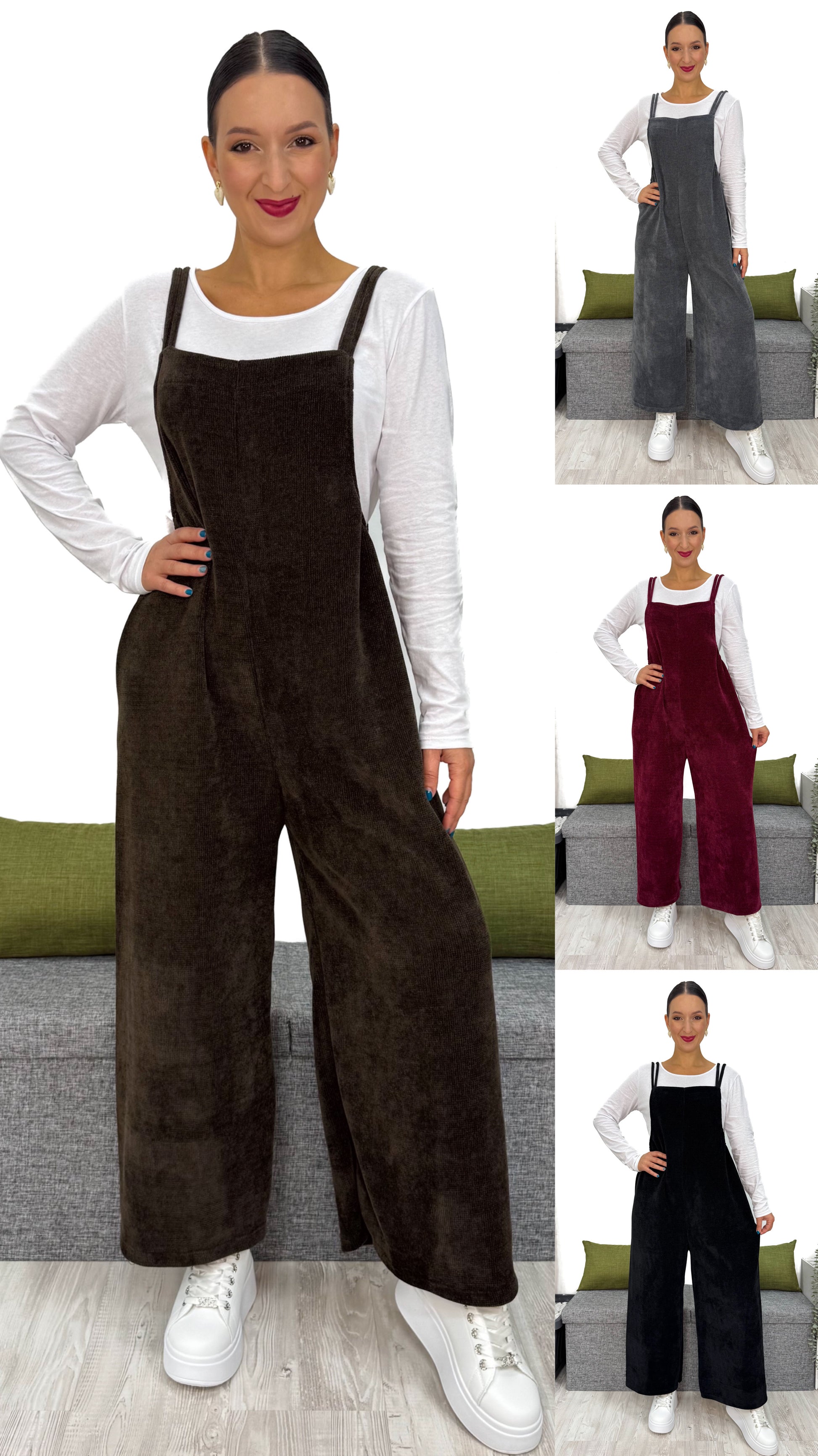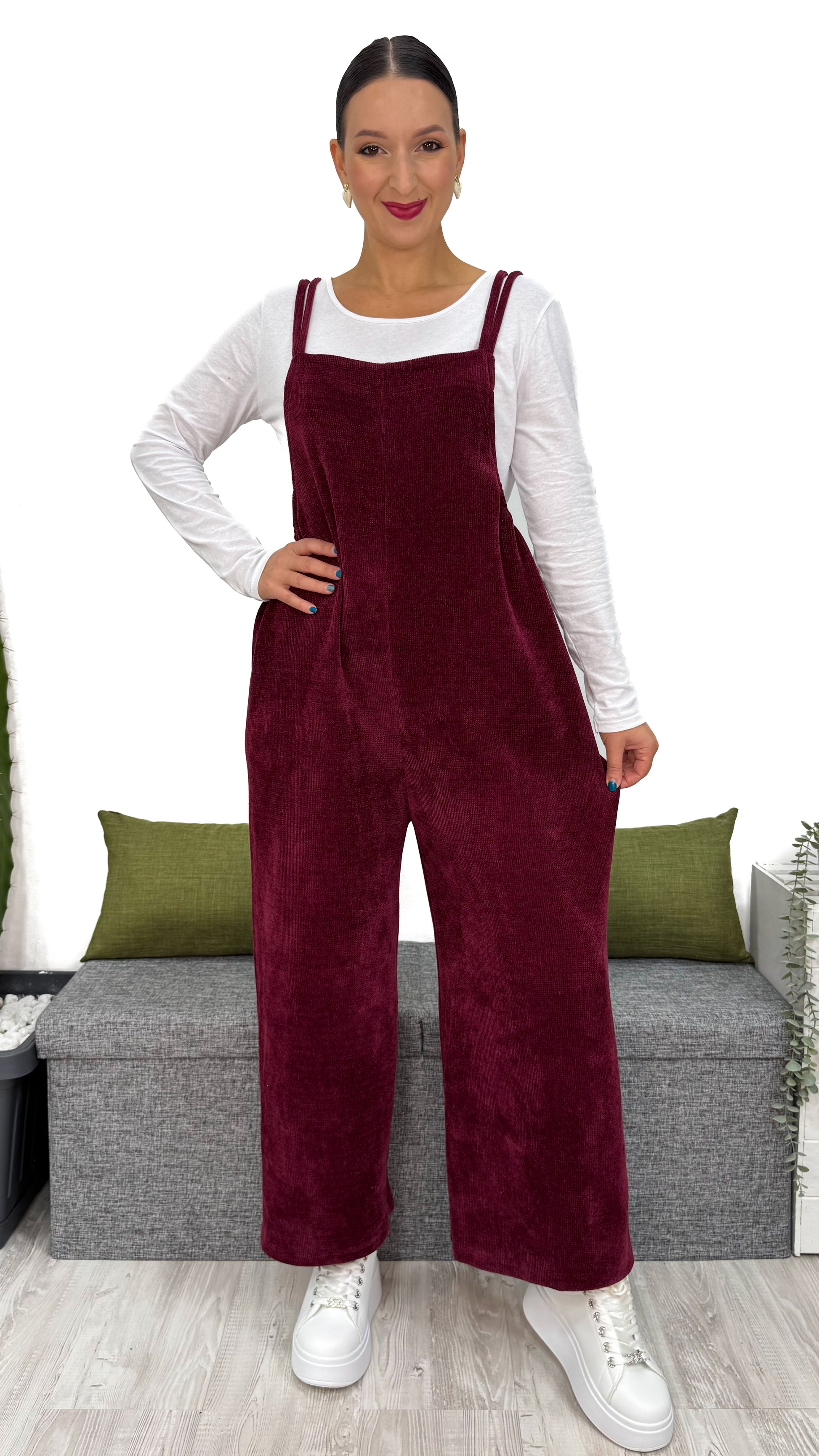 Questa TUTA INTERA in ciniglia a costine piccole è il capo che non può mancare nel tuo guardaroba.