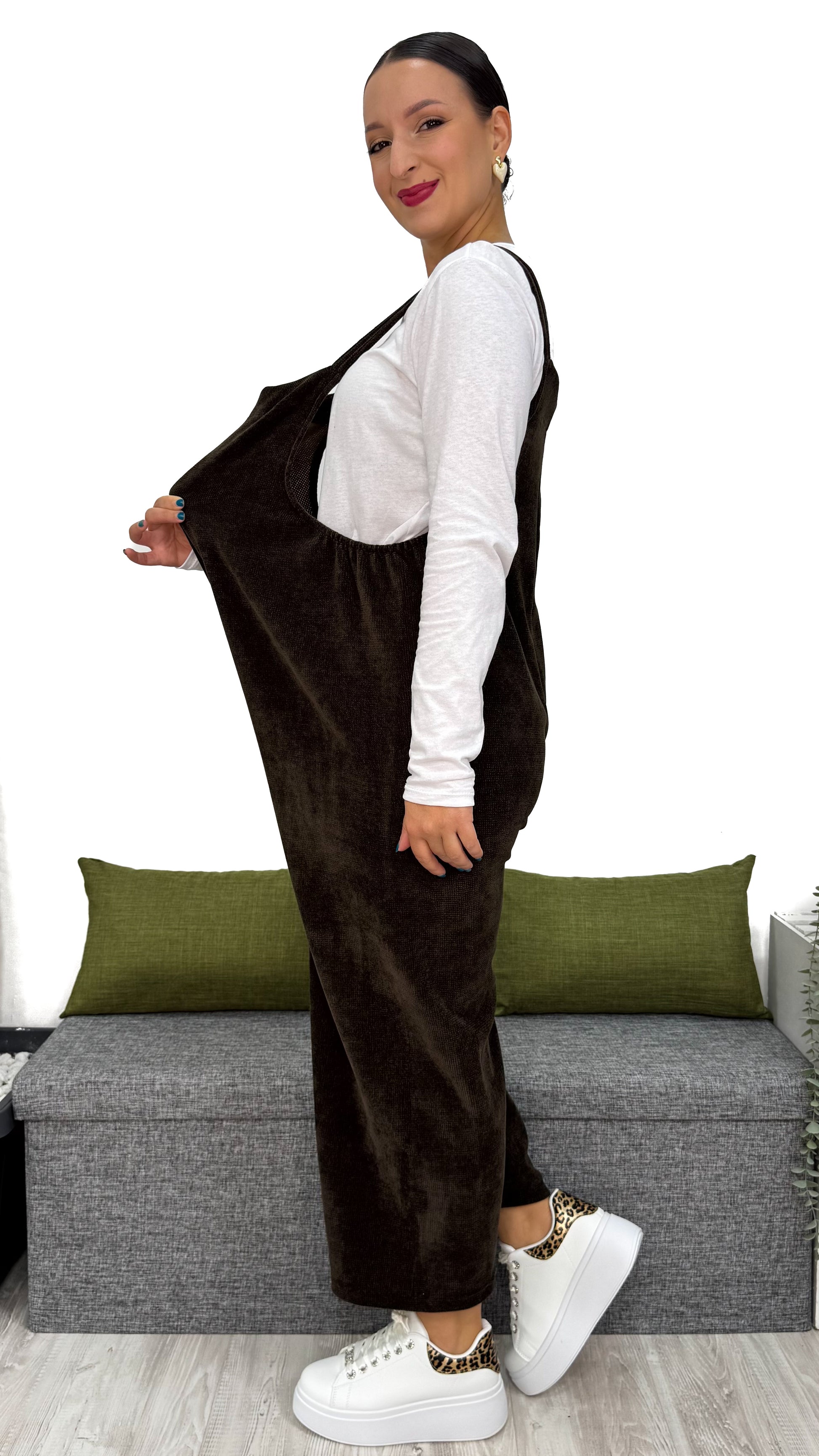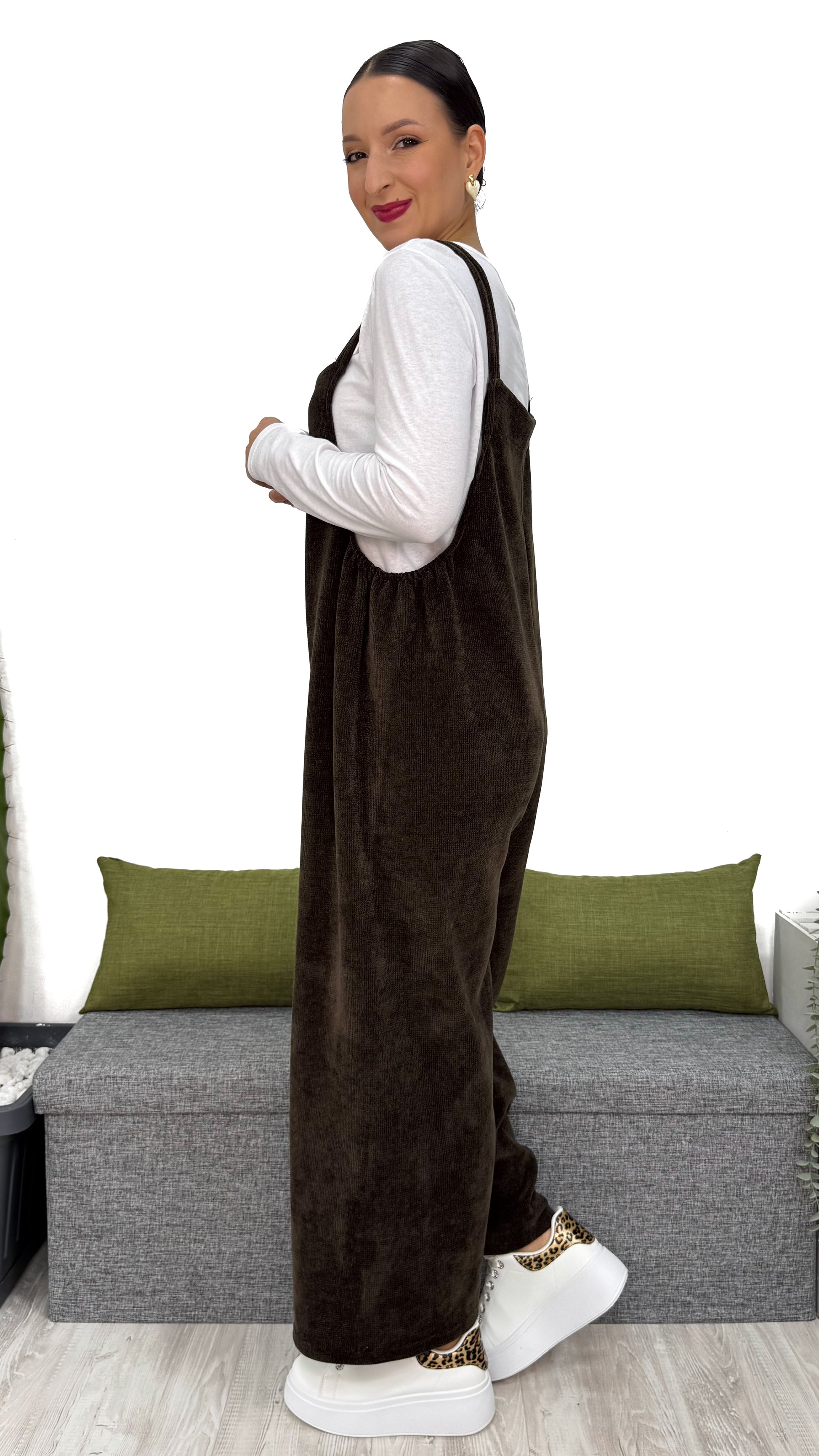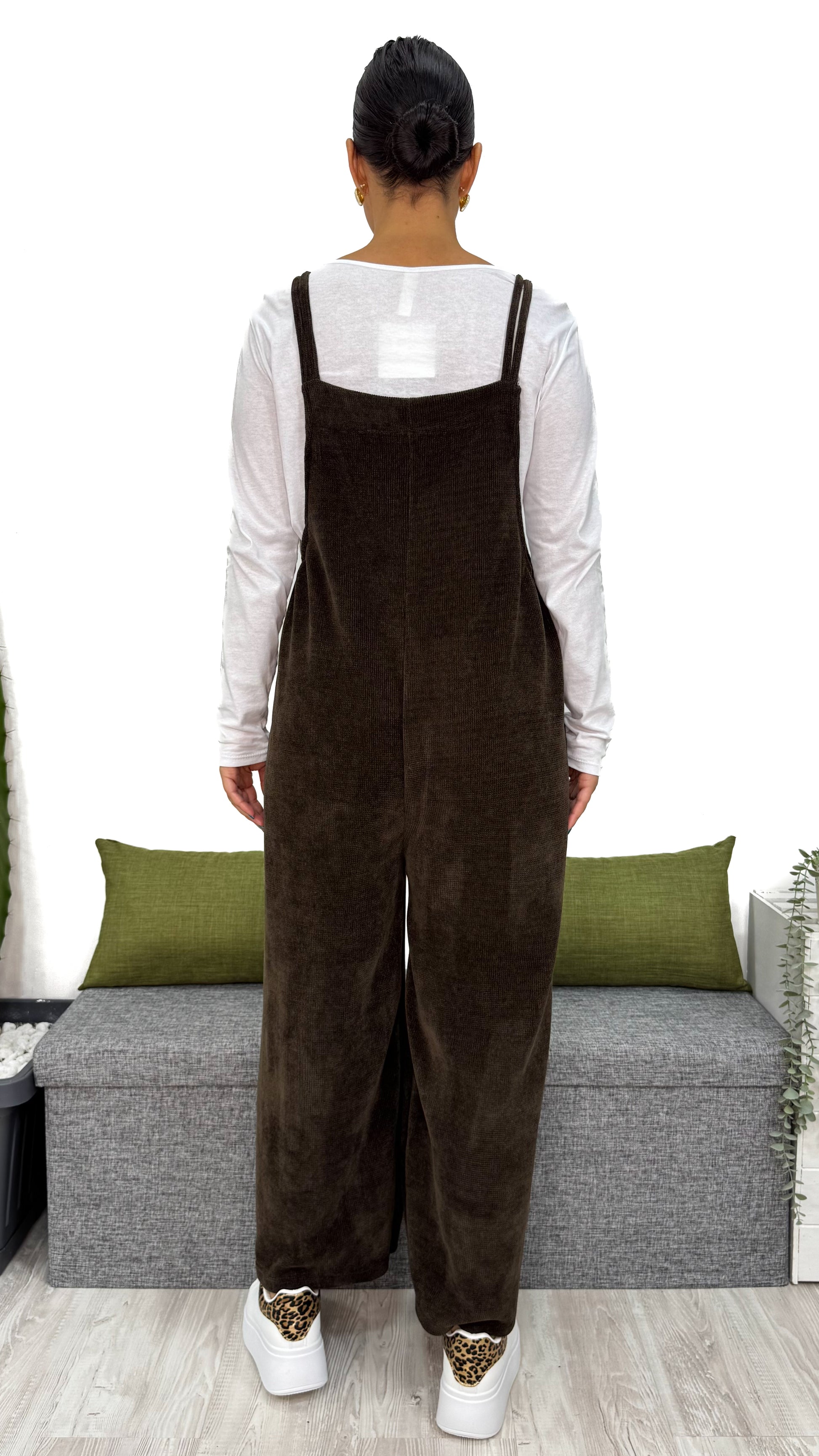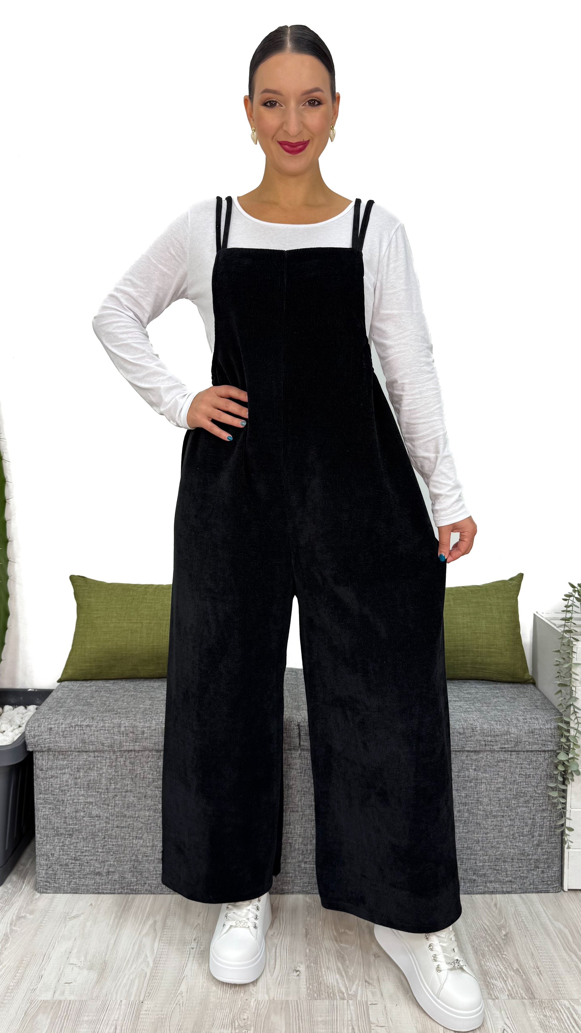 Questa TUTA INTERA in ciniglia a costine piccole è il capo che non può mancare nel tuo guardaroba.